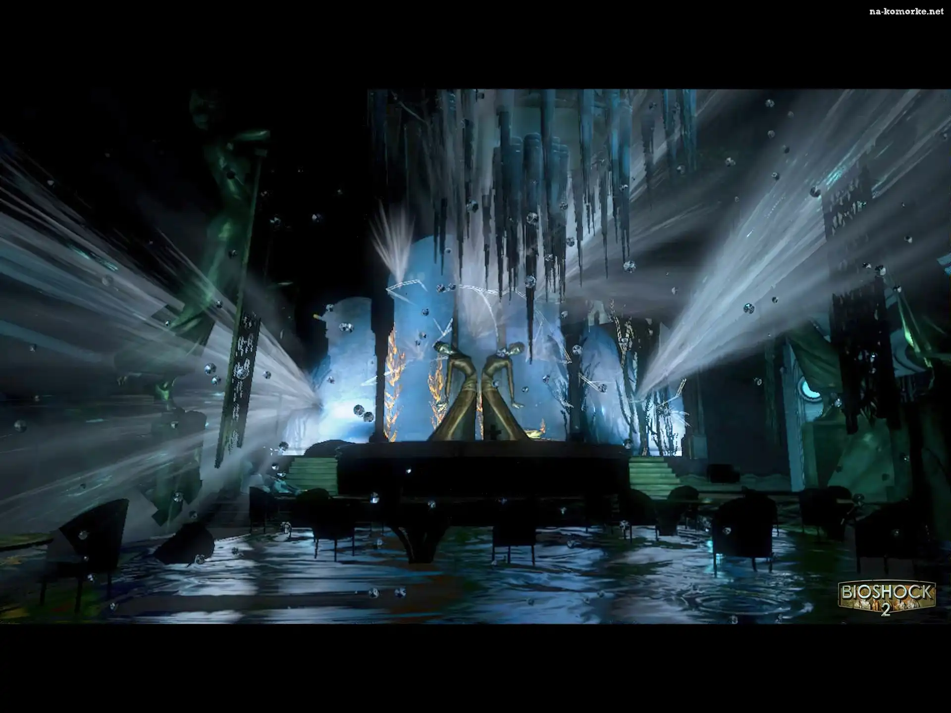Bioshock 2, Rybki Bioshock 2, Potwór Bioshock 2, Wiertło Bioshock 2, Stwory Bioshock 2, Szpikulec Bioshock 2, Potwór, Dziewczynka Bioshock 2, Woda, Ryby Bioshock 2, Sala