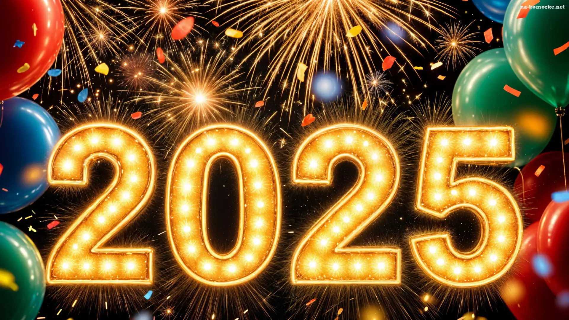 Sylwester, Balony, Nowy Rok, Grafika, Data, Fajerwerki, 2025 na Komórkę