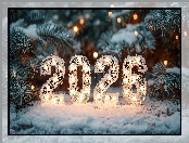 Śnieg, Cyfry, Choinka, Grafika AI, Nowy Rok, 2026 na Komórkę