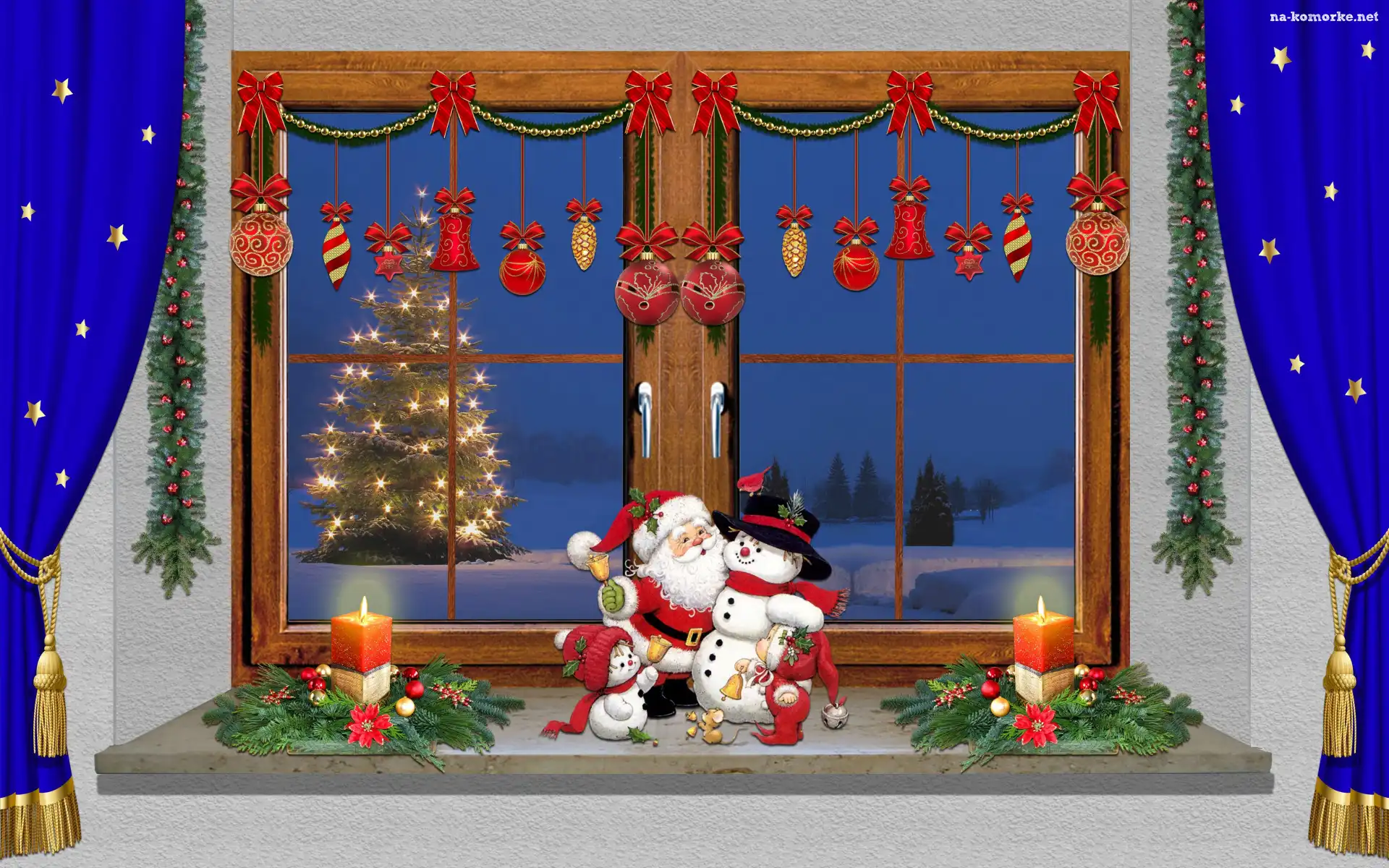 Boże Narodzenie, Mikołaj, Dekoracja, Okno, 2D, Stroiki, Girlandy, Parapet, Bombki, Bałwanek, Świeczki na Komórkę |