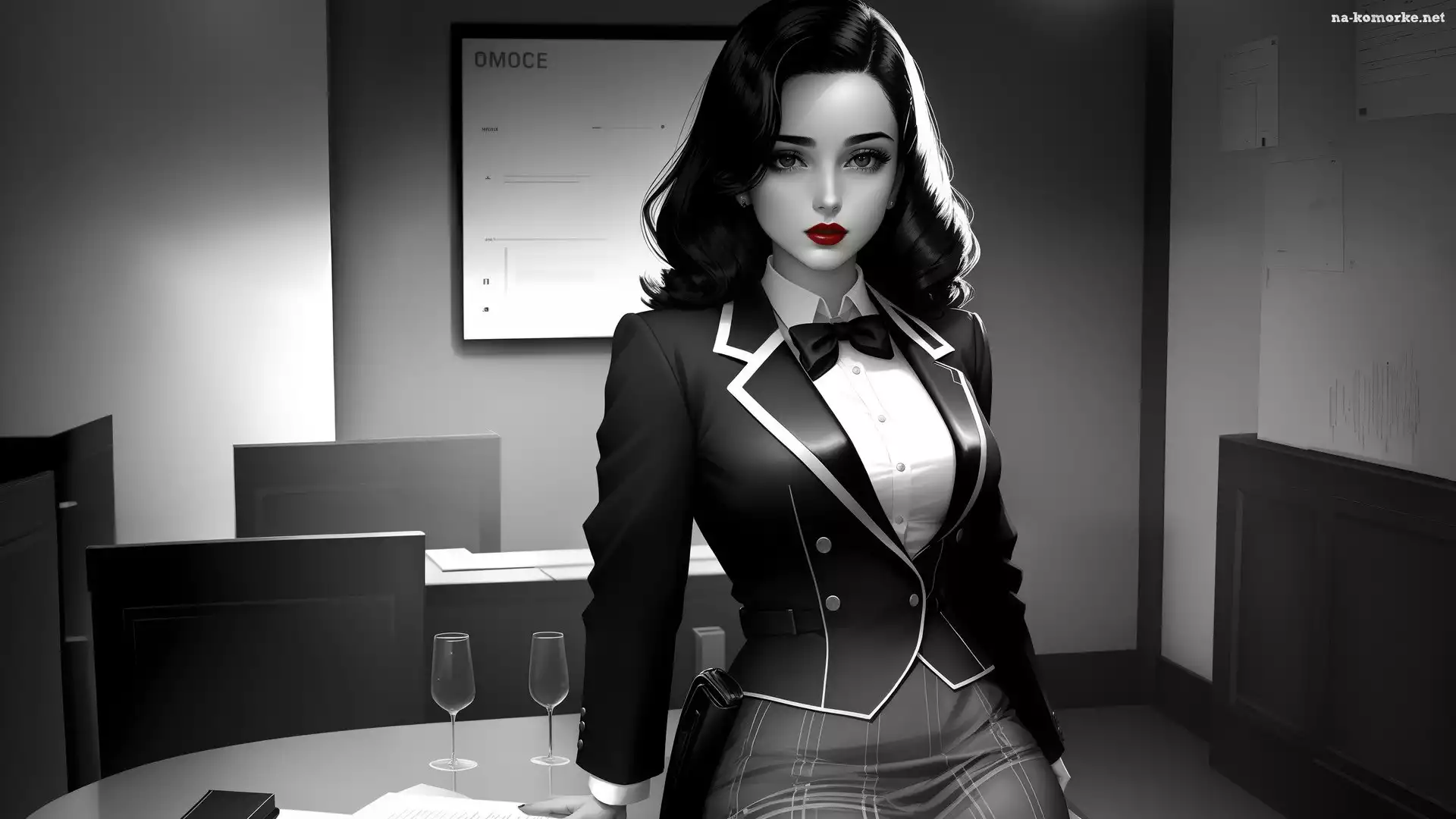 Kieliszki, Stół, Dziewczyna, 2D, Strój, Dwa, Czarny na Komórkę