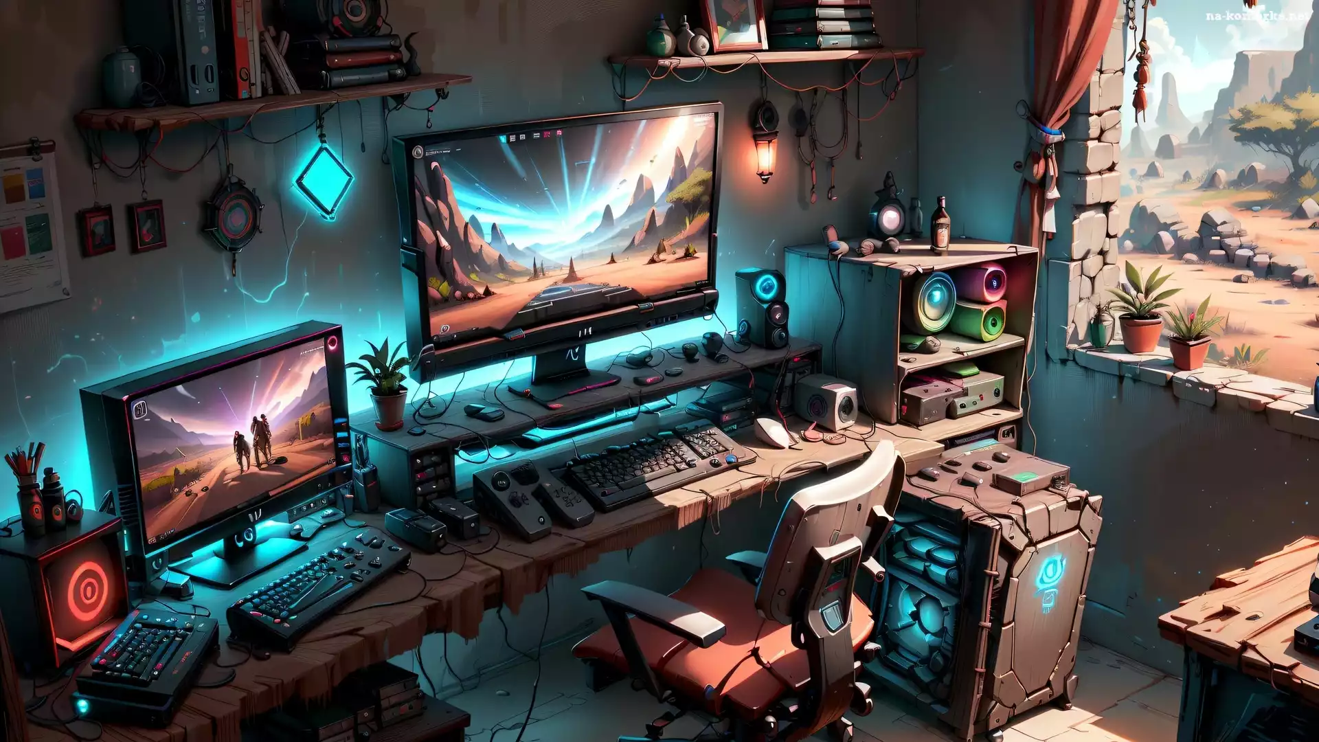 Okno, Wnętrze, Komputer, 2D, Monitory, Pokój na Komórkę