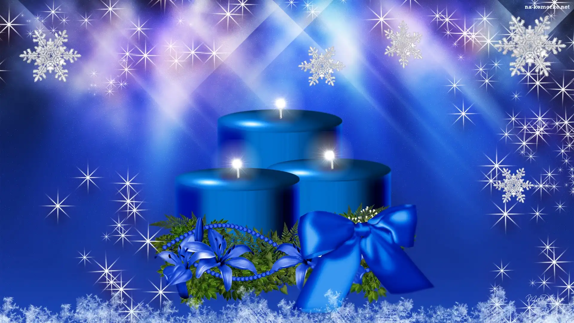 2D, Boże Narodzenie, Niebieskie, Świece, Wstążki na Komórkę