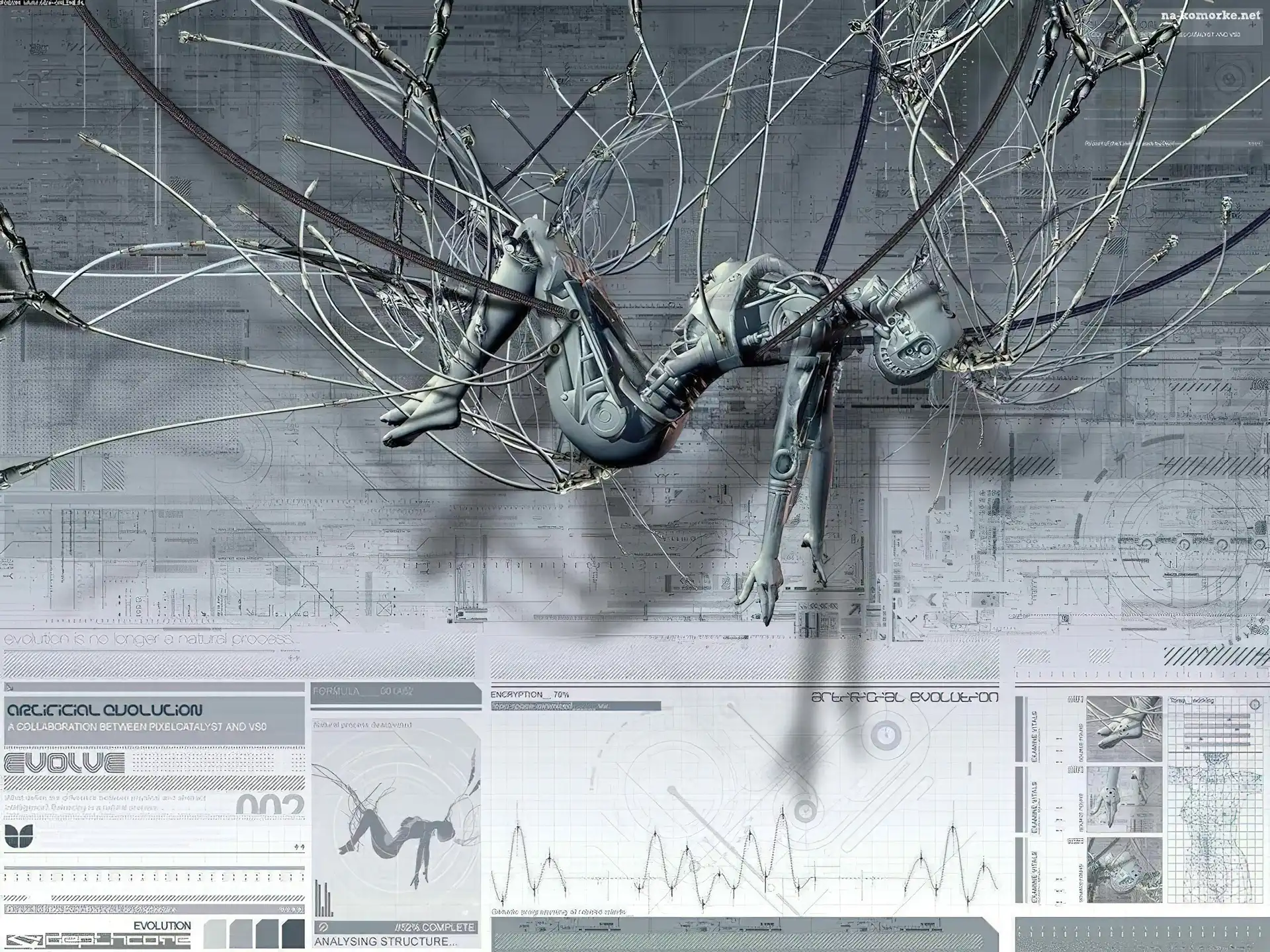 3D, kable, Wektorowa, robot na Komórkę