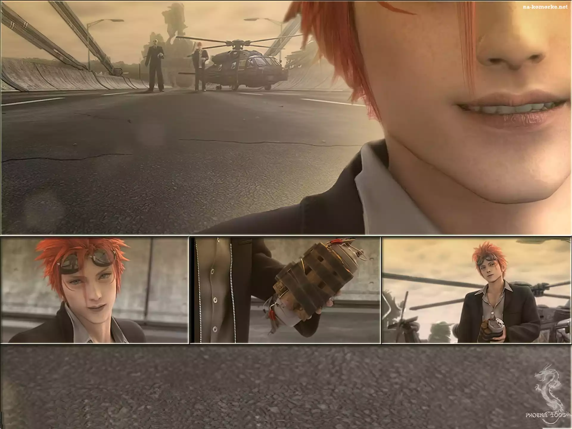 Ff 7 Advent Children, bomba, helikopter, człowiek na Komórkę