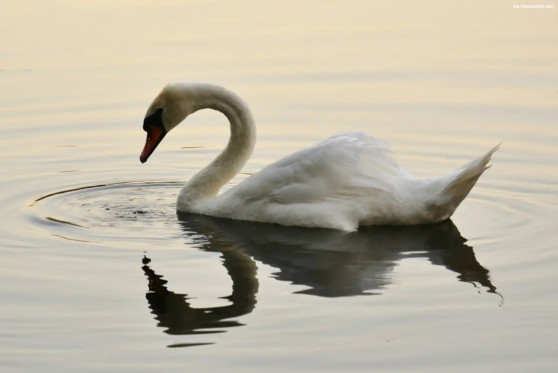 Biały, Łabędź, Woda na Komórkę