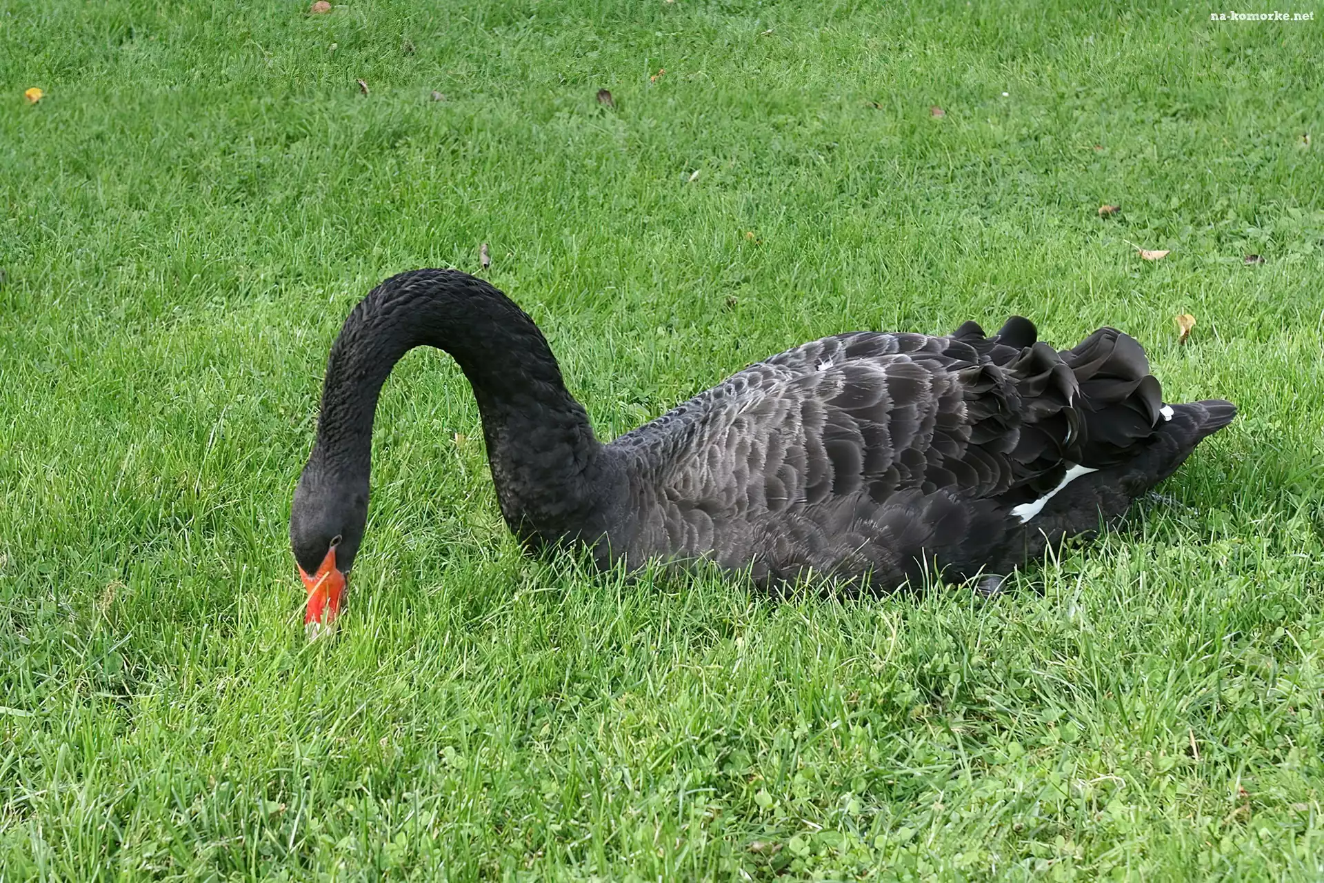 Czarny, Łabędz, Trawa na Komórkę