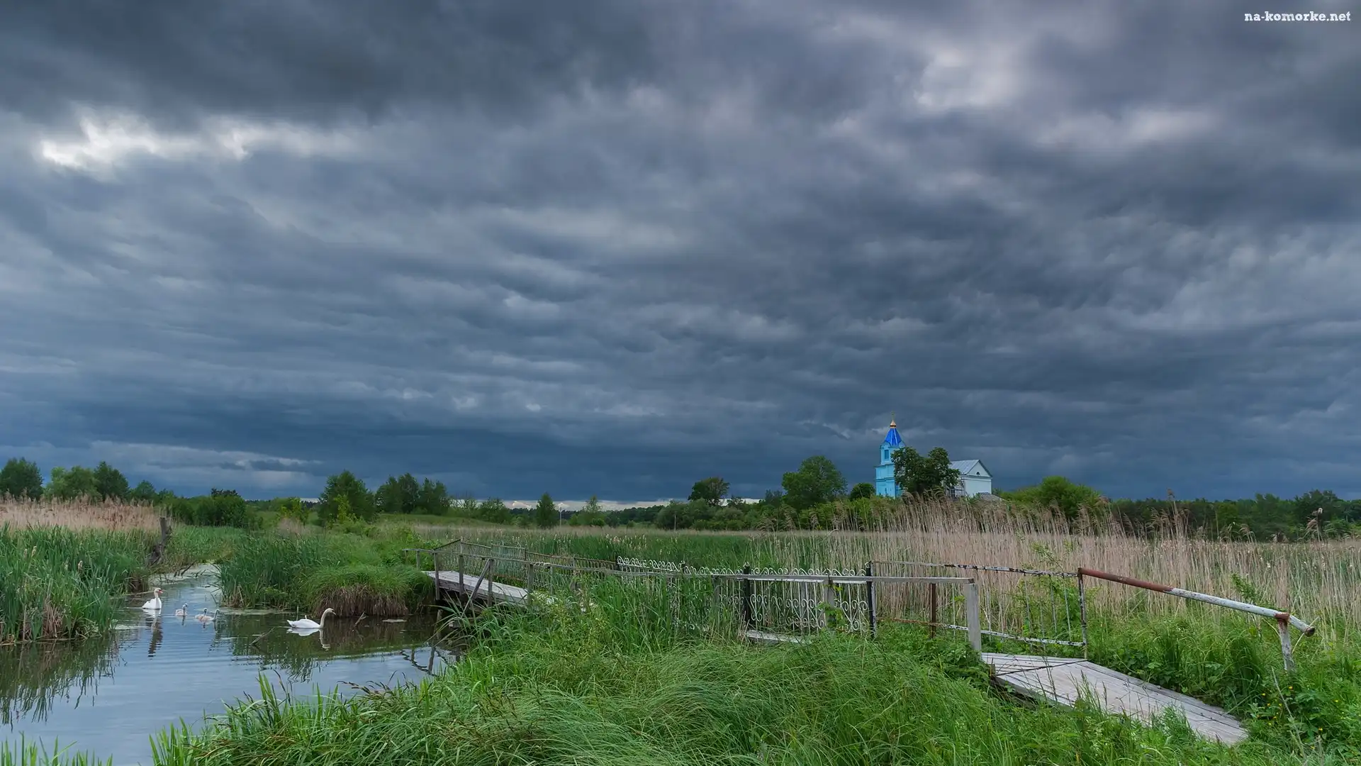 Zachmurzone, Łabędzie, Cerkiew, Mostek, Niebo, Kościół, Łąka, Staw na Komórkę