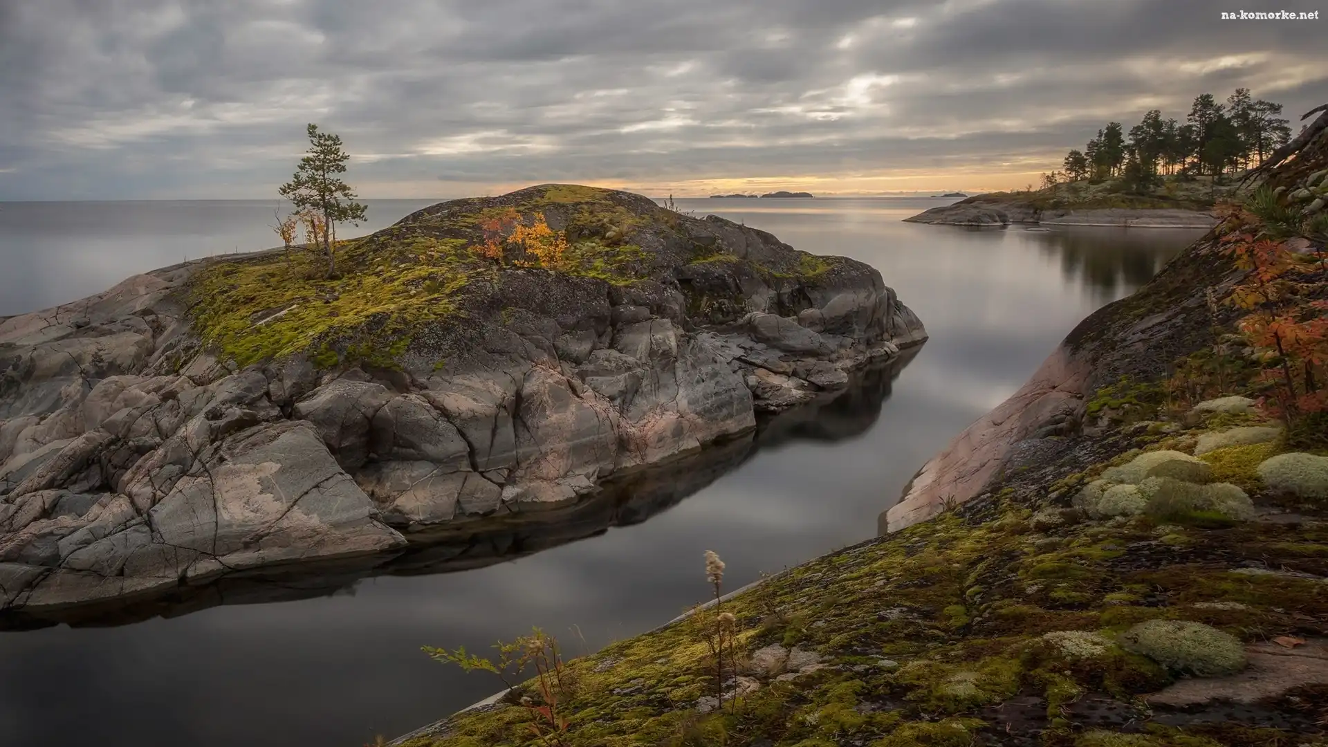Jezioro Ładoga, Karelia, Rosja, Wysepka, Skały, Drzewa, Mech na Komórkę