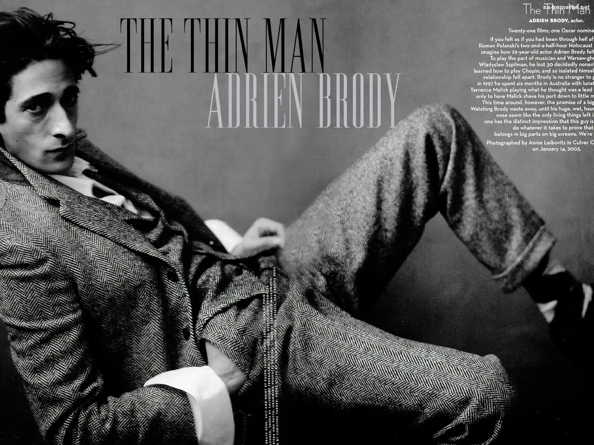 Adrien Brody, szary, garnitur na Komórkę