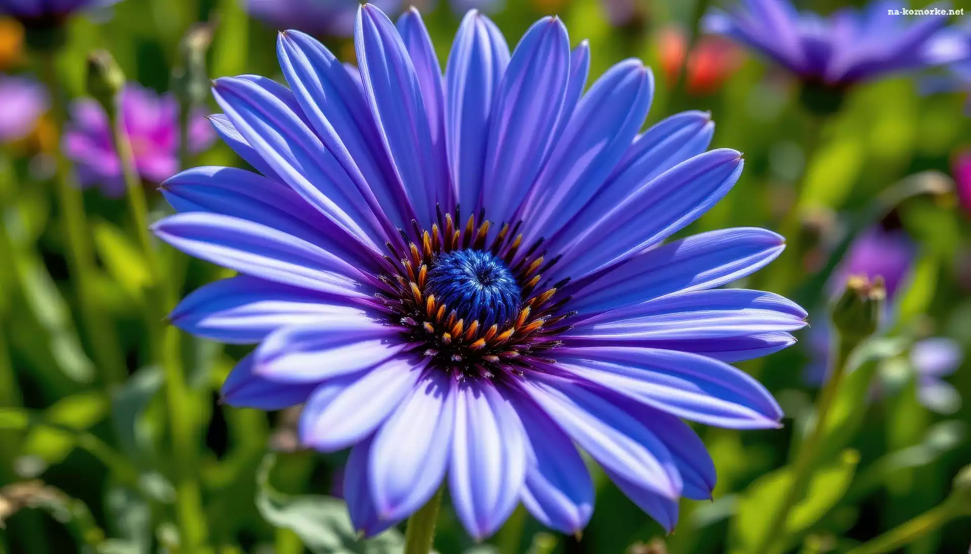 Stokrotka afrykańska, Zbliżenie, Kwiat, Niebieski na Komórkę