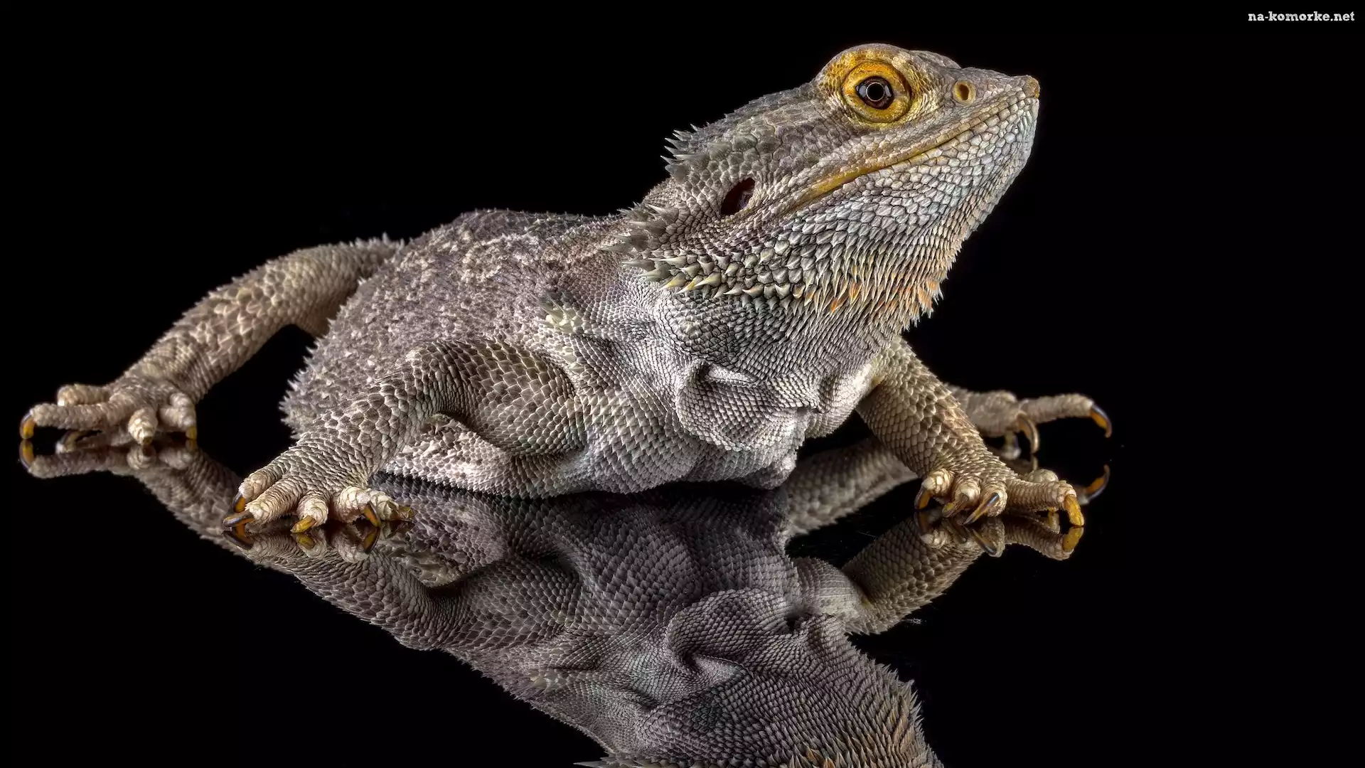 Jaszczurka, Tło, Czarne, Agama brodata, Odbicie na Komórkę