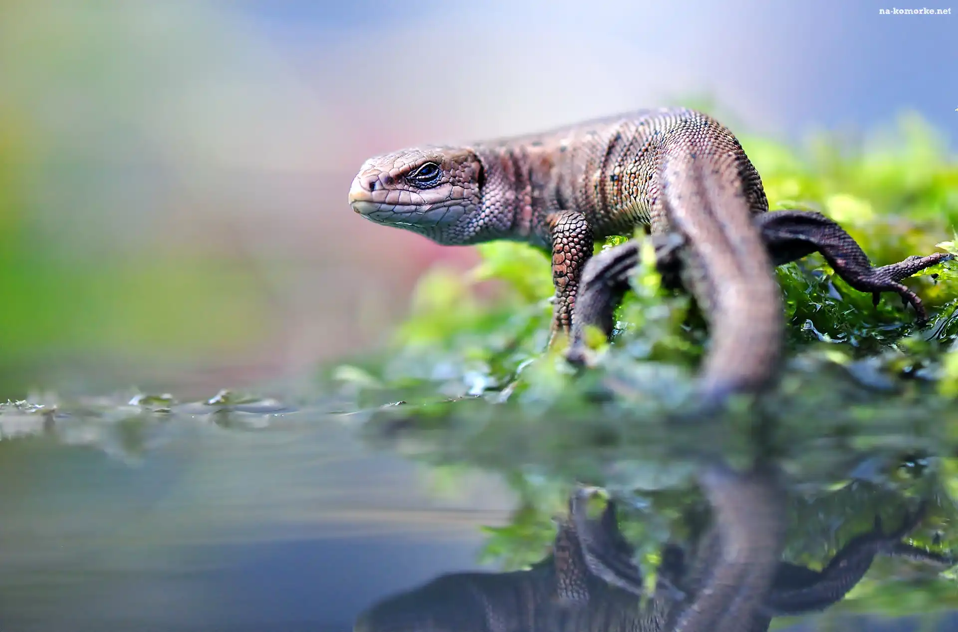 Agama, Odbicie, Rośliny, Woda na Komórkę