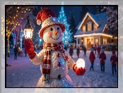 Kula, Lampion, Bałwanek, AI, Czapka, Zima, Szalik na Komórkę