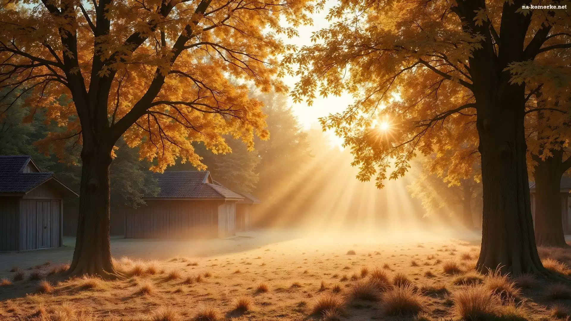 Przebijające światło, Grafika AI, Jesień, Drzewa na Komórkę
