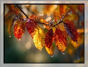 Grafika, Gałązka, Krople, AI, Liście, Jesienne na Komórkę
