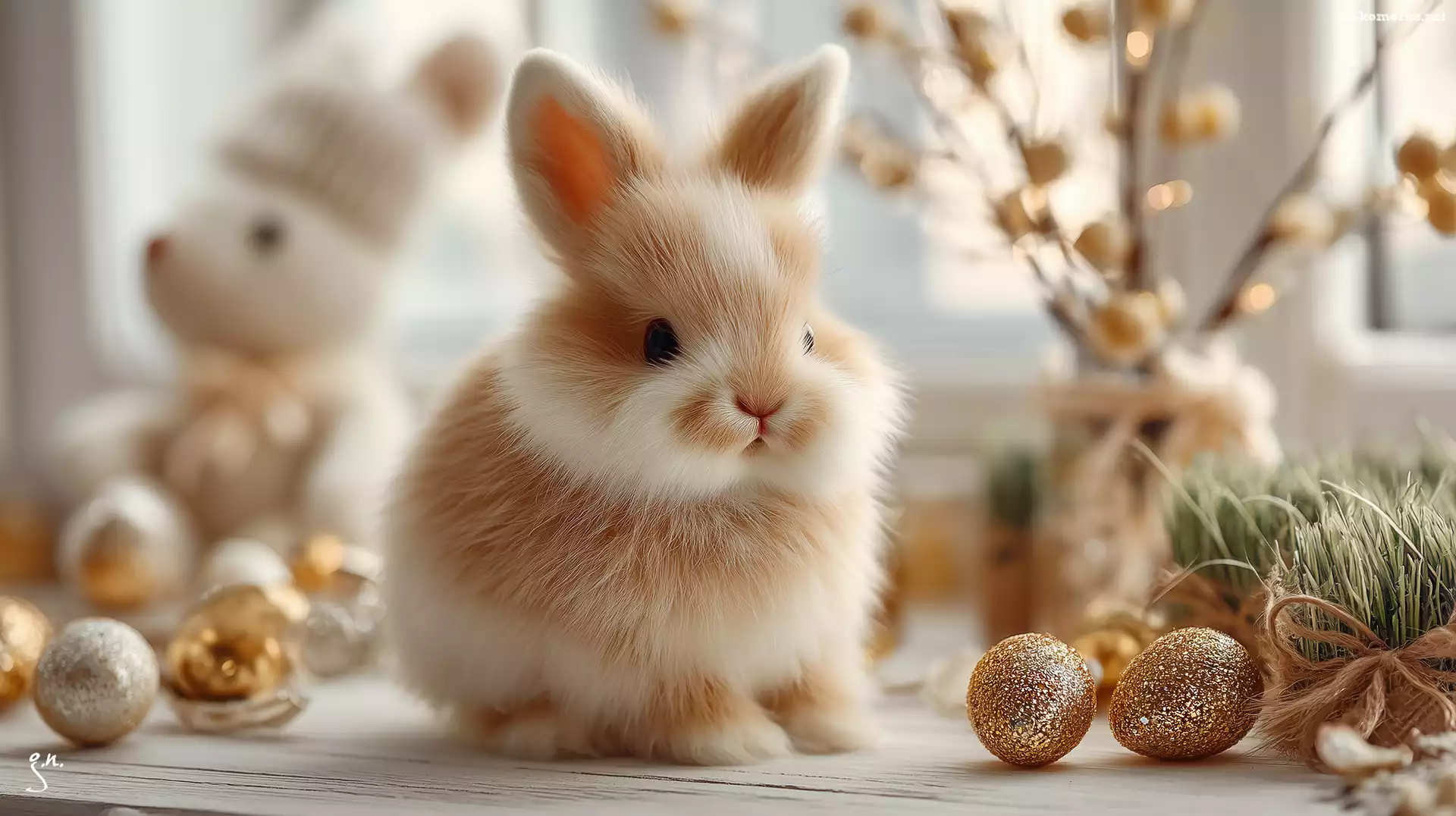 Wielkanoc, Jajka, Grafika AI, Złote, Królik na Komórkę