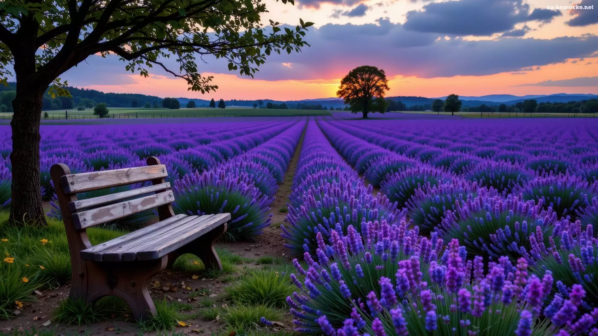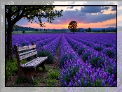 Góry, Pole, Drzewa, AI, Ławka, Lawenda na Komórkę