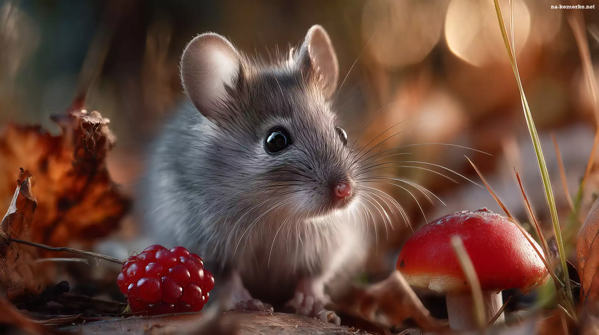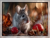 Grafika, Myszka, Liście, AI, Grzyb, Malina na Komórkę