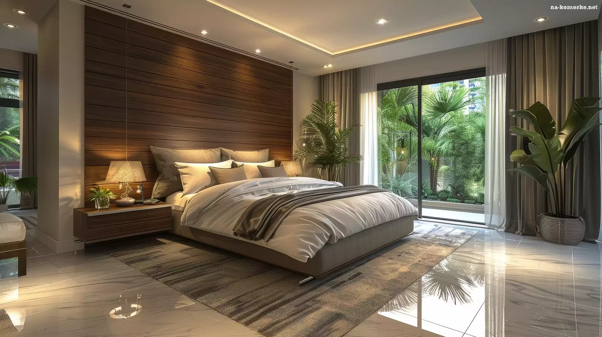 Roślina, Dywan, Sypialnia, AI, Okno, Oświetlenie, Łóżko na Komórkę