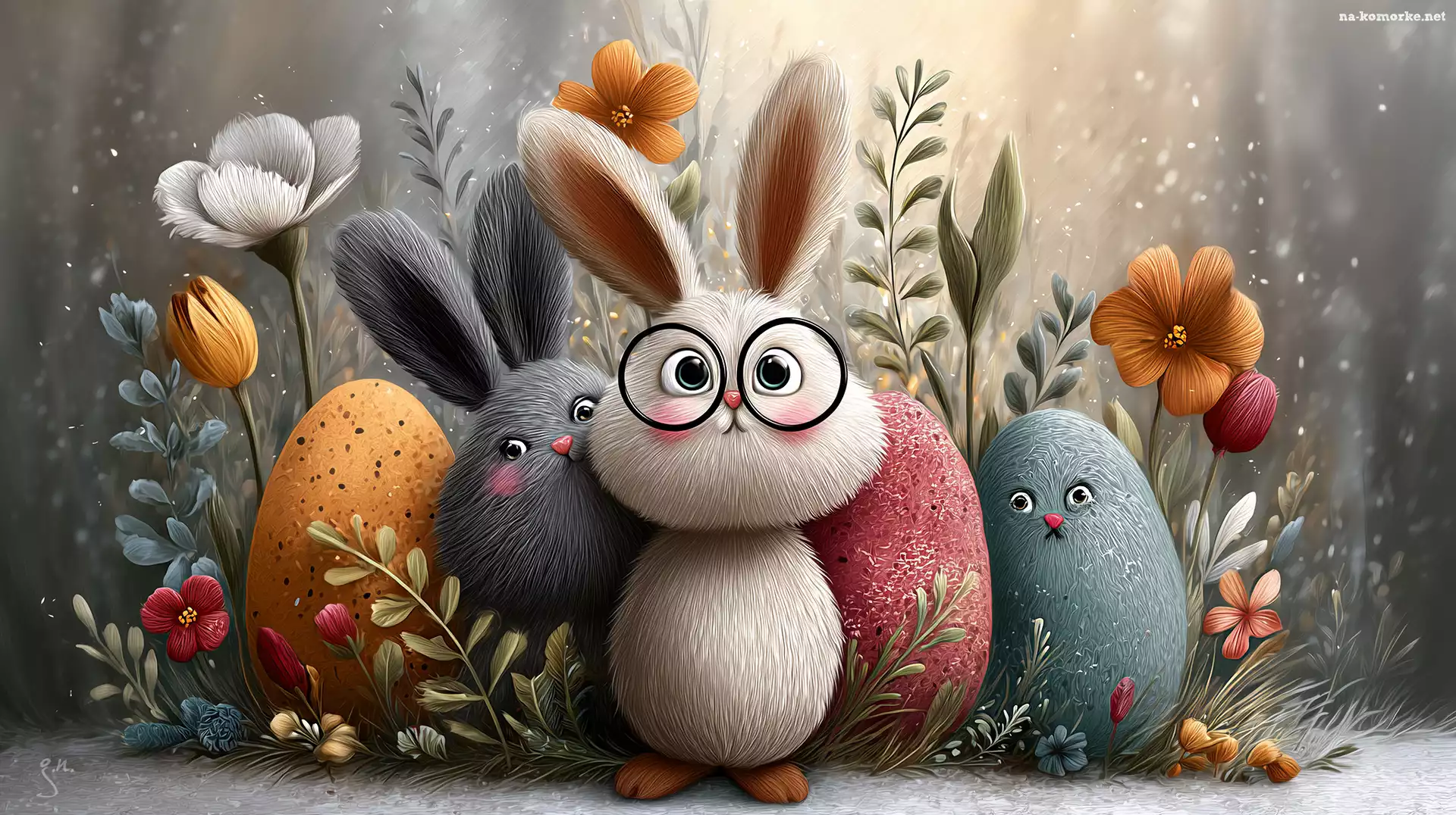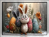 Zajączki, Kwiaty, Grafika AI, Jajka, Wielkanoc na Komórkę