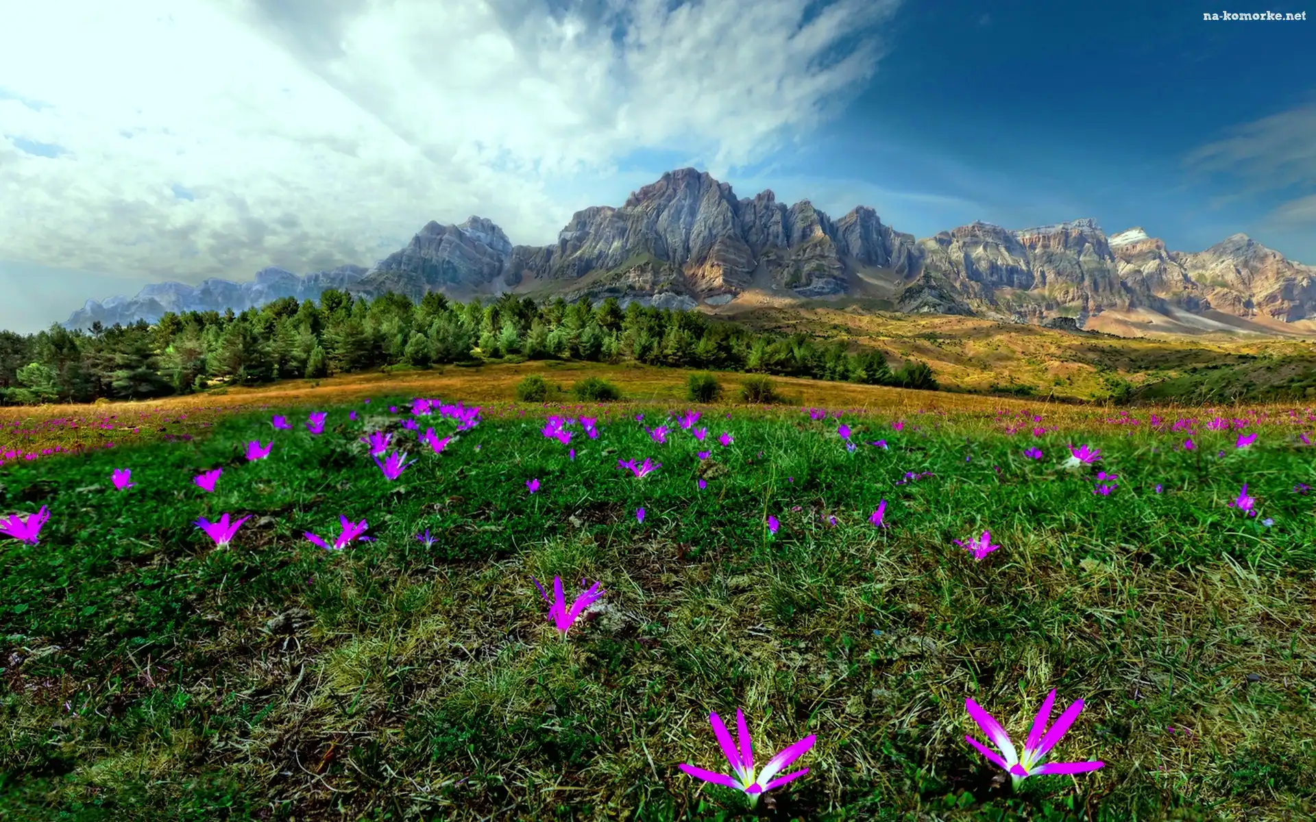 Góry, Drzewo, Morze Chmury, Łąka, Gąszcz, Drzew, Ciemne Góra Góra, Słońca, Morze, Zachód Niebo, Zielona, Łąka, Kwiatki, Błękitne Żółty, Kwiatuszek Kręta, Skały, Górska, Droga Góry, śnieg, łąka, woda Zachód, Słońca, Łąka Pudełko, Kwiatki Fioletowa, Prymula Różowe, Orchidee Kieliszek, Gałązka Góra, Drzewo, Łąka