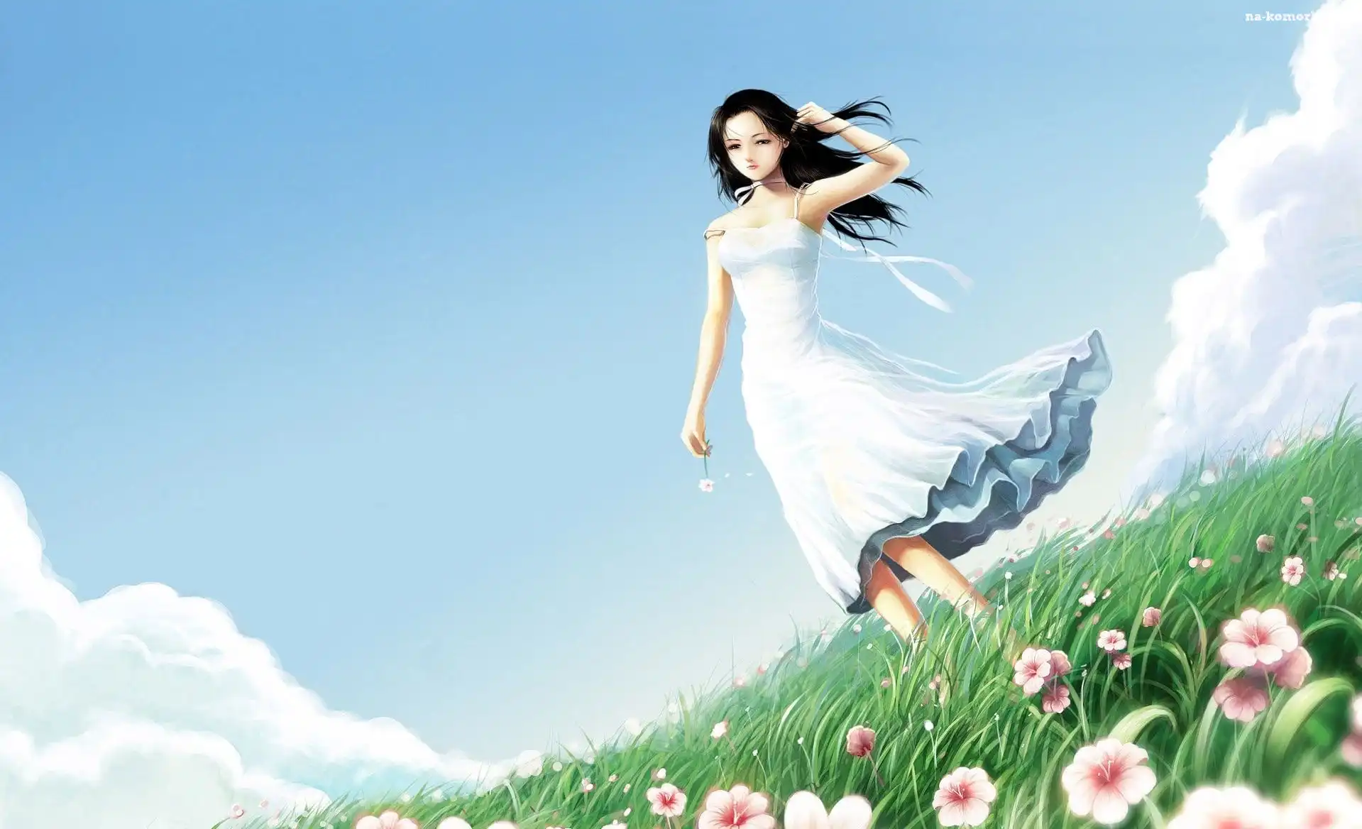 Dziewczyna, Łąka, Kwiaty na Komórkę
