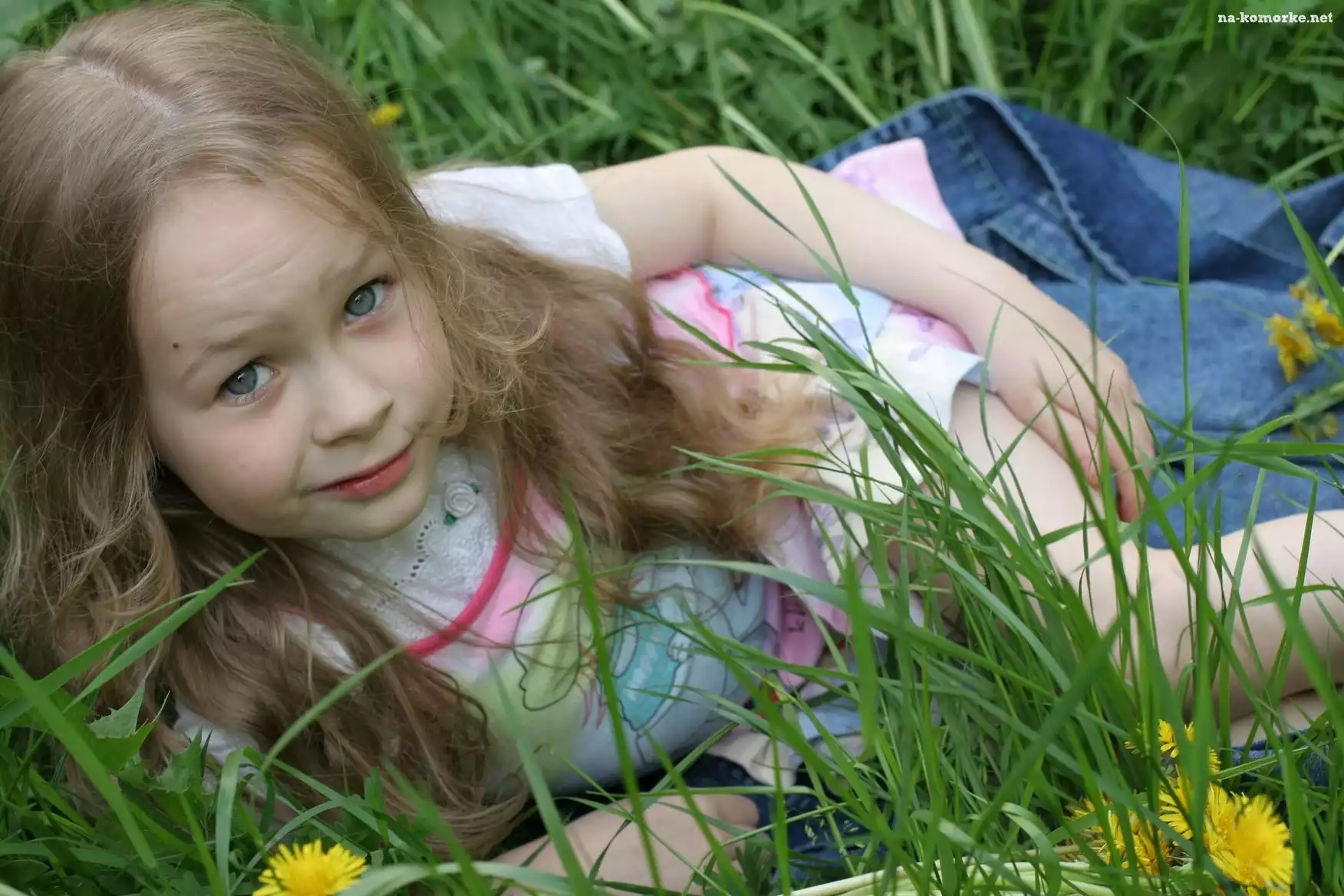Dziewczynka, Łąka, Kwiatki na Komórkę