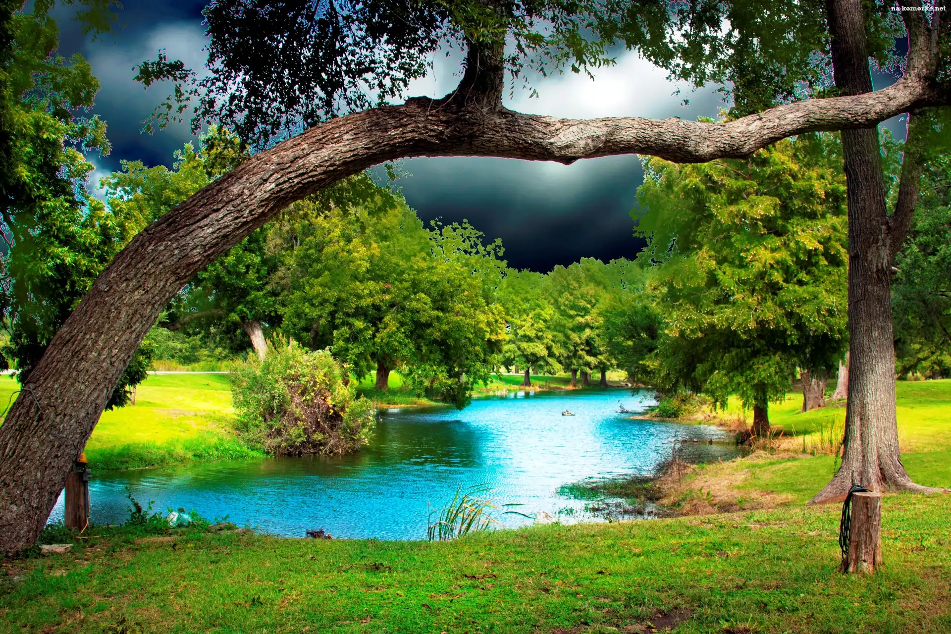 Staw, Łąka, Drzewa na Komórkę