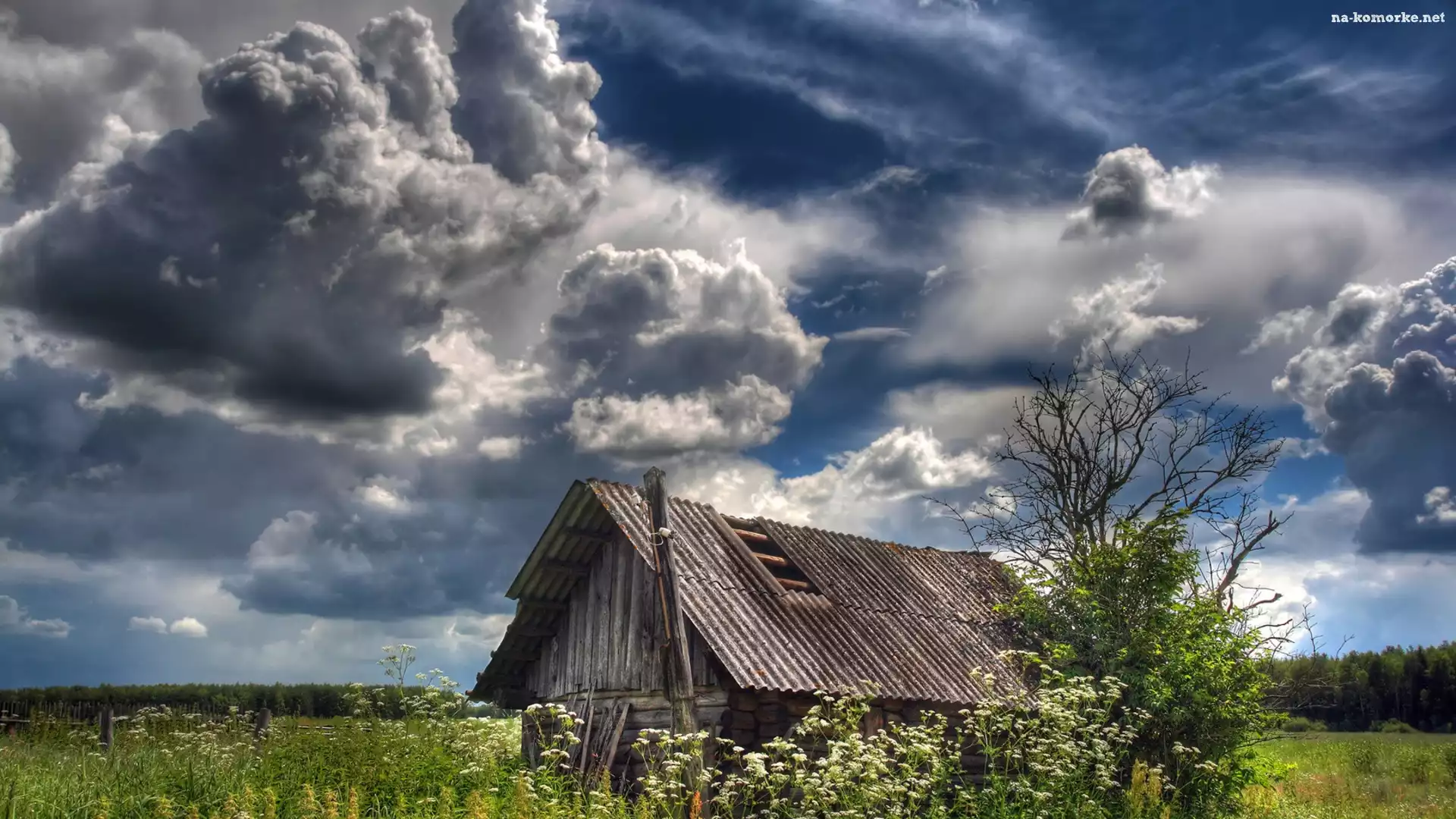 Szopa, Łąka, Chmury na Komórkę