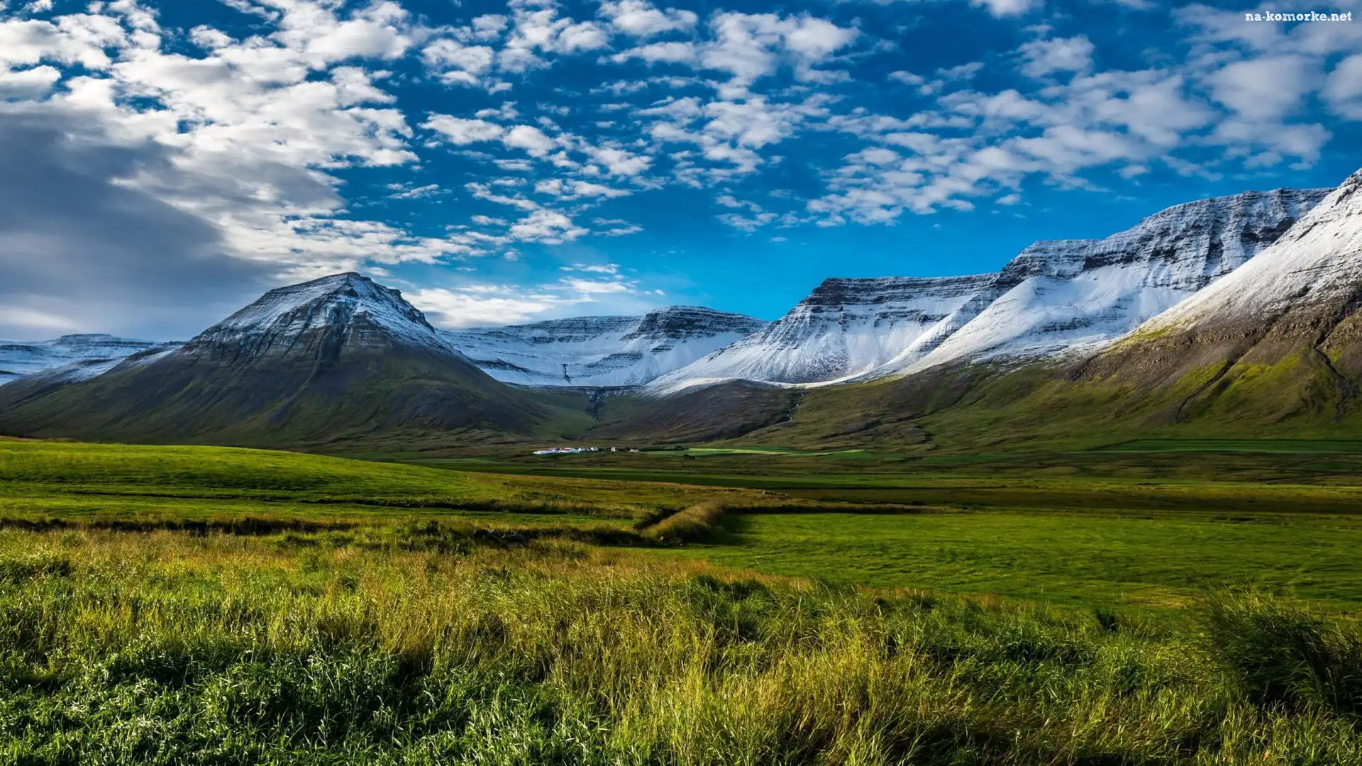 Łąki, Półwysep Westfjords, Islandia, Chmury, Góry, Pola na Komórkę
