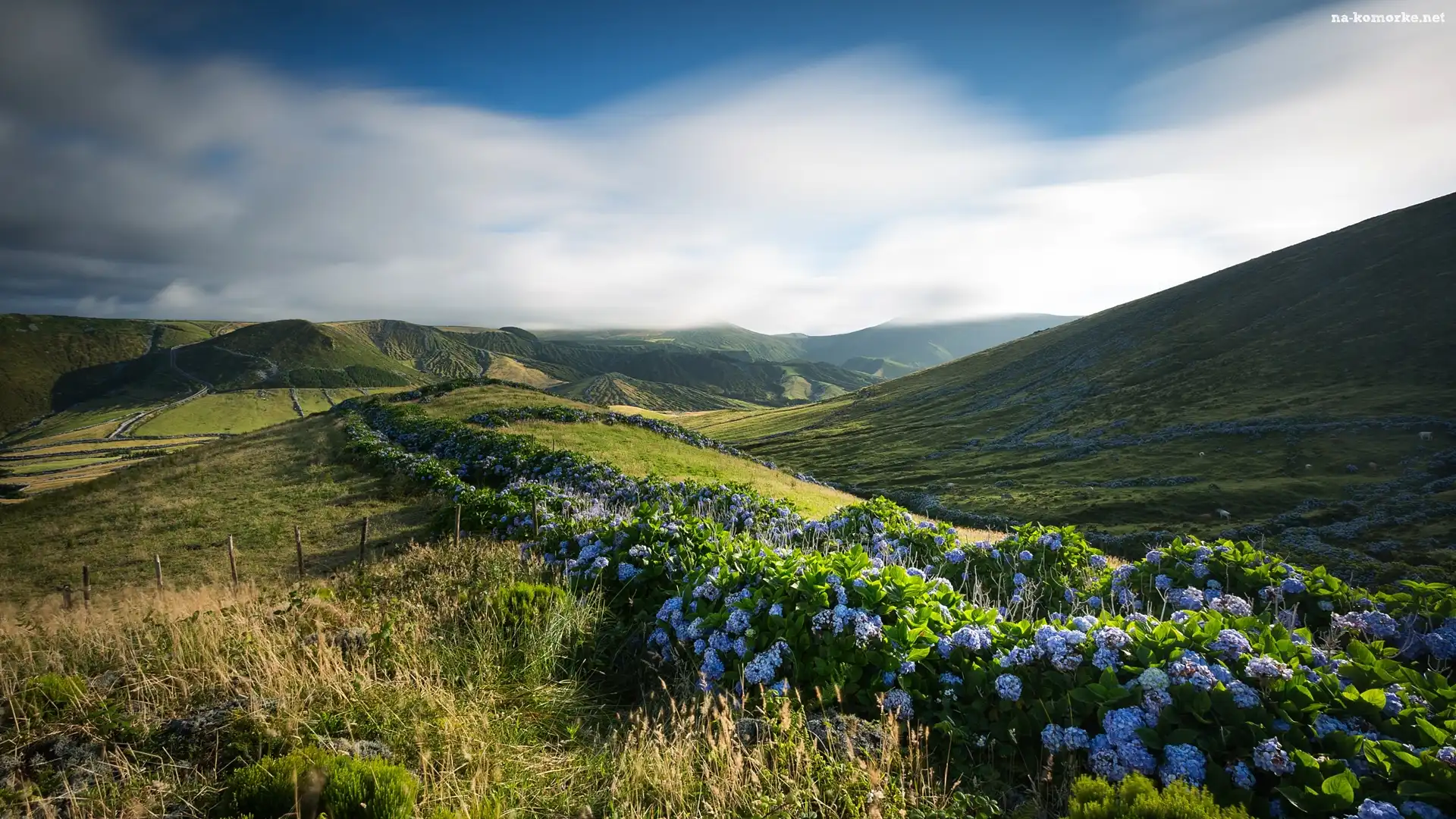 Wzgórza, Łąki, Hortensje na Komórkę