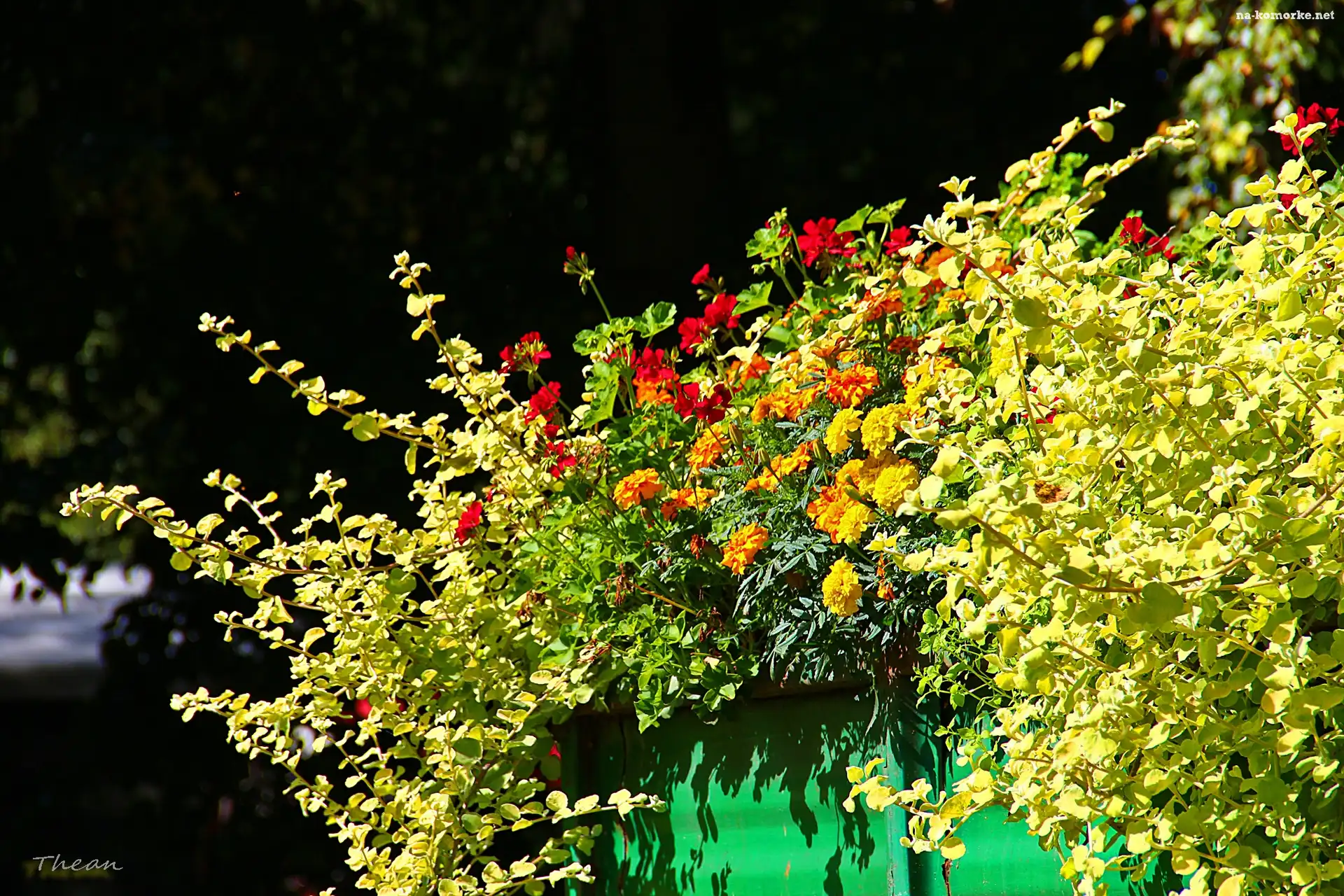 Kwiaty, Aksamitki, Pelargonie na Komórkę