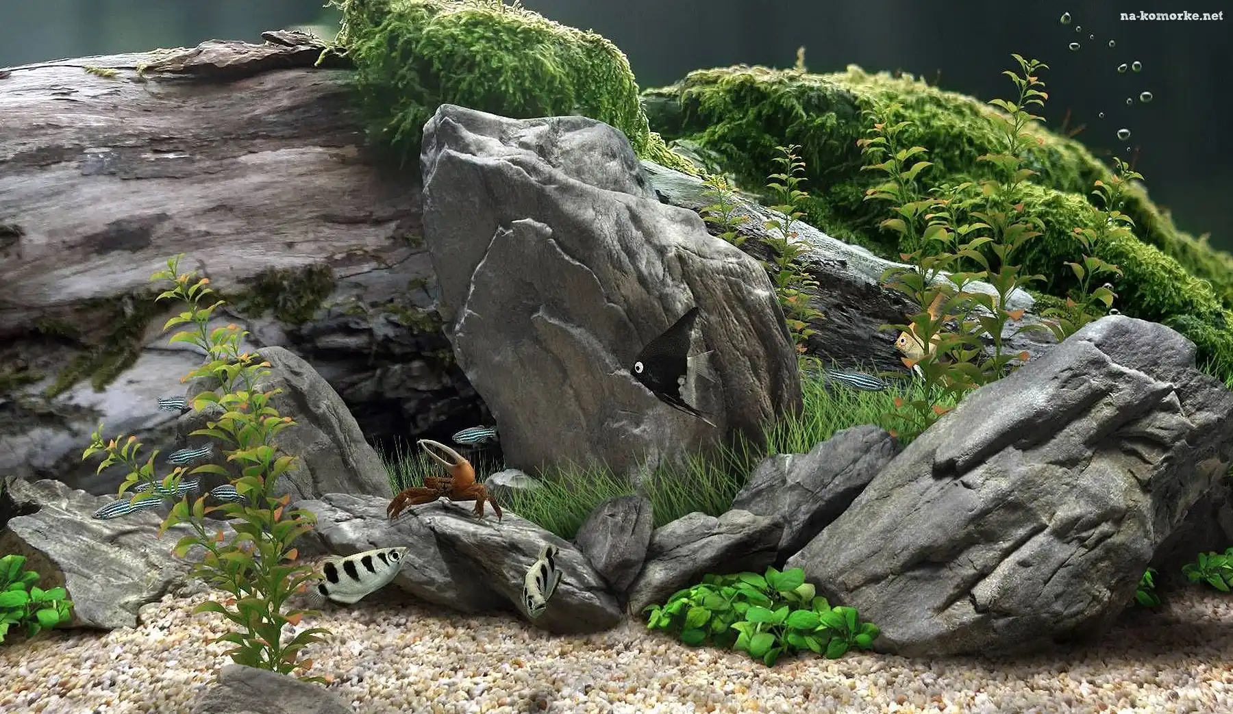 Akwarium, Krab, Kamienie, Rybki na Komórkę