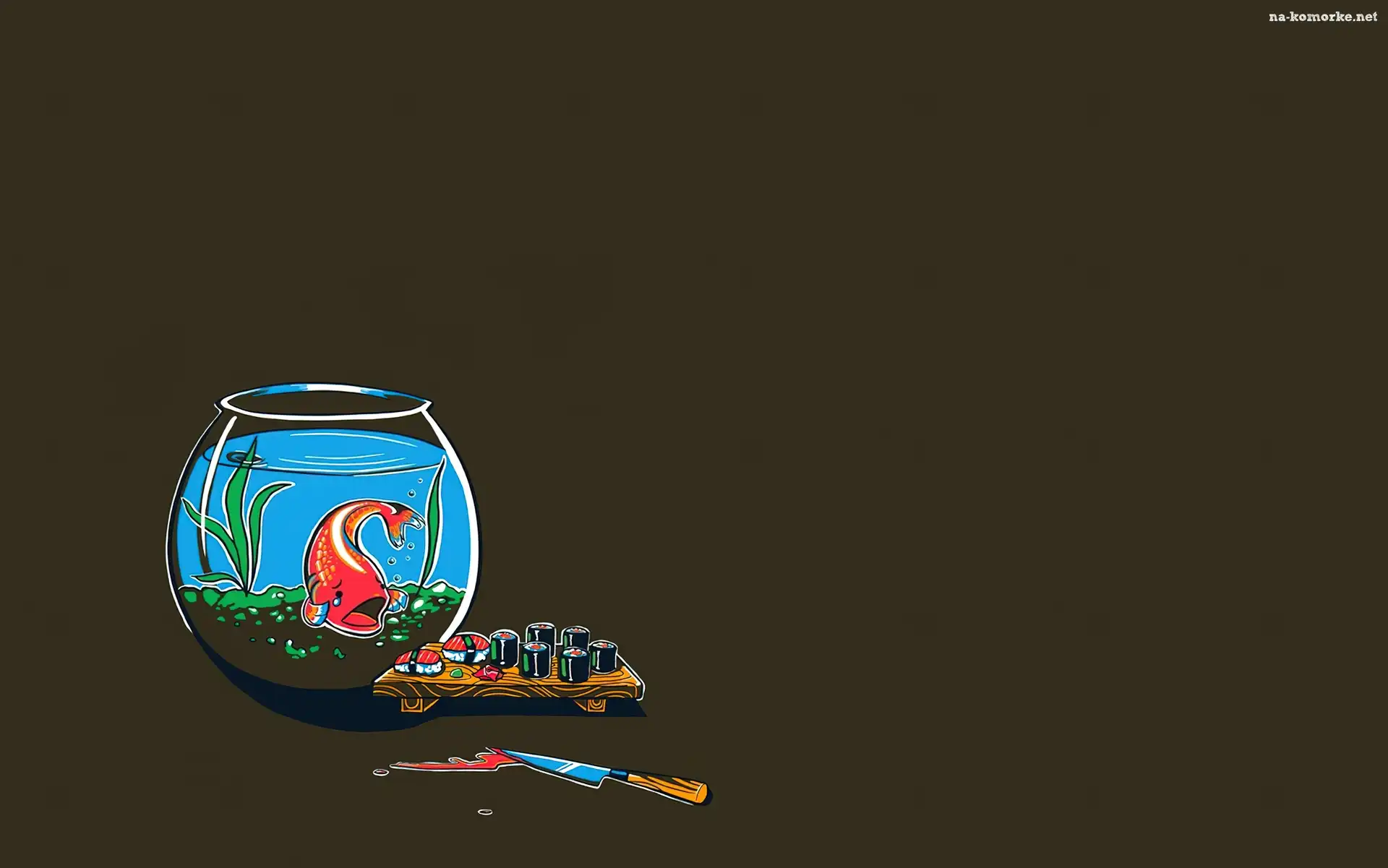 Akwarium, Nóż, Ryba, Sushi na Komórkę