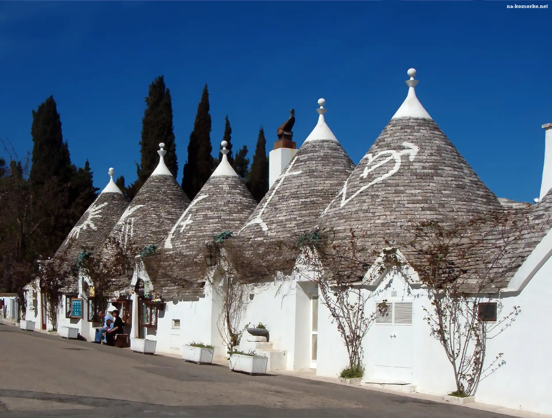 Alberobello, Drzewa, Domy, Ulica na Komórkę