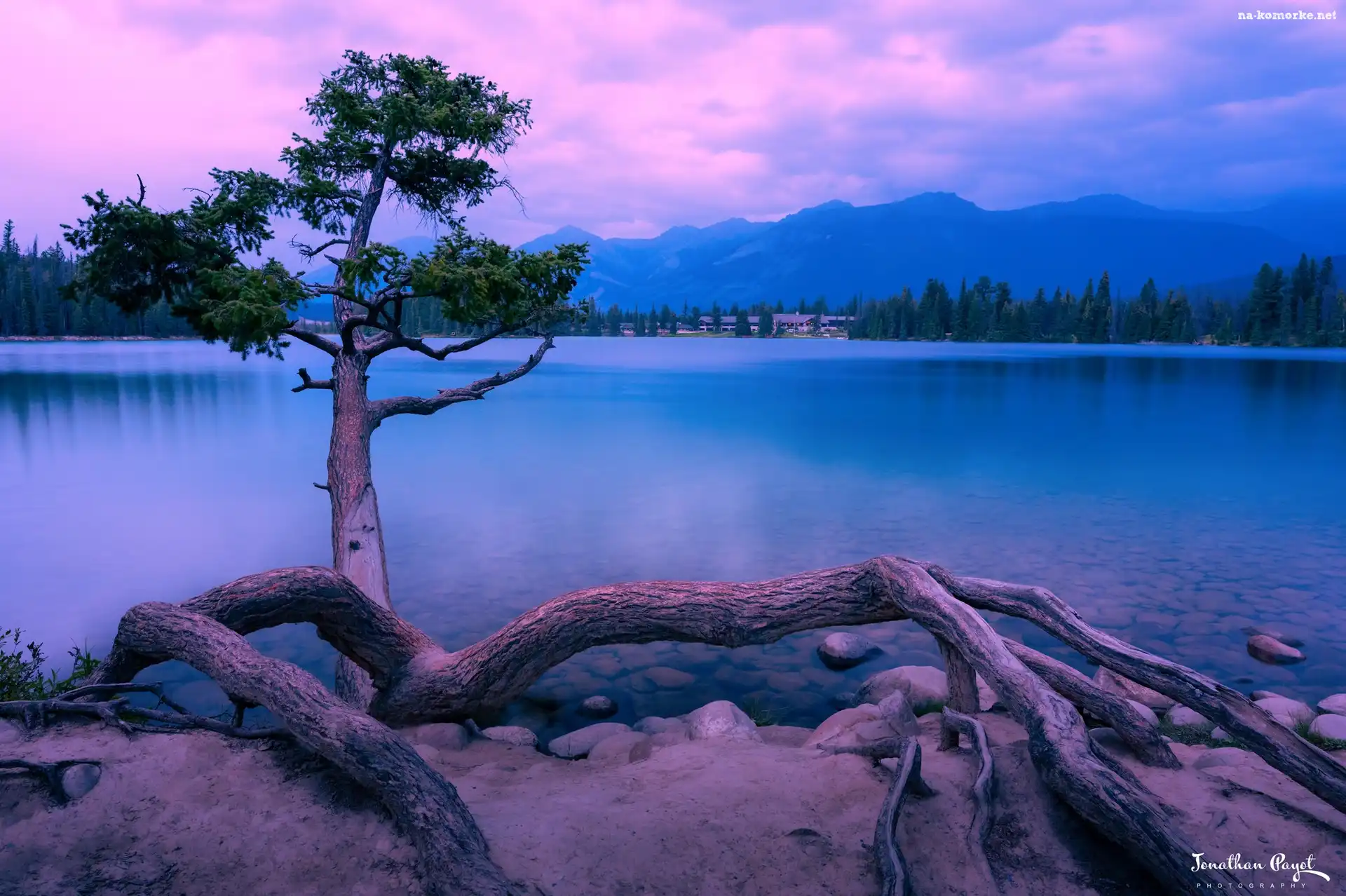 Alberta, Drzewo, Park Narodowy Jasper, Kanada, Maligne Lake, Jezioro na Komórkę