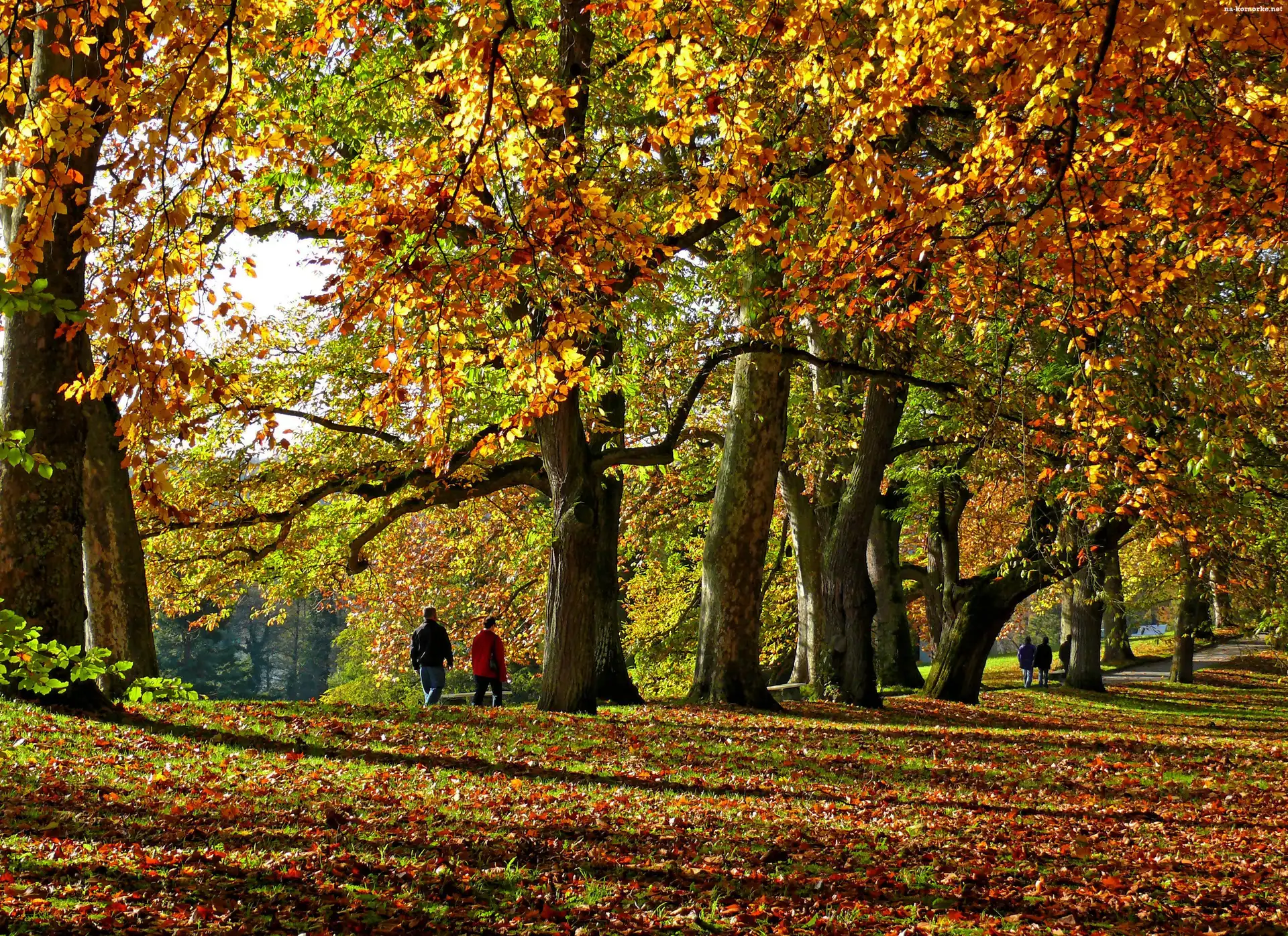 Aleja, Park, Jesień, Liście, Drzewa, Kolorowe na Komórkę