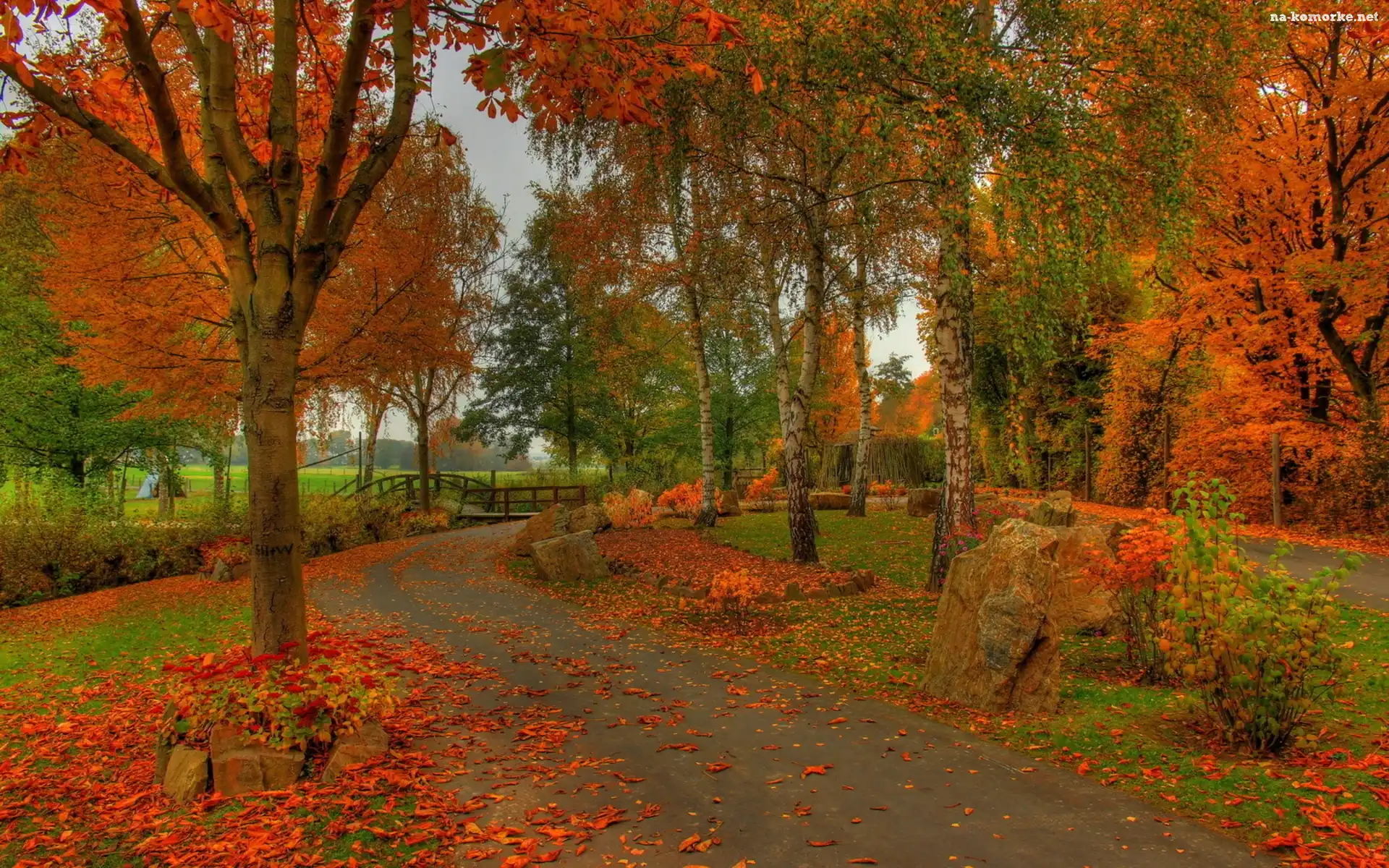 Aleja, Rzeka, Park, Jesień, Mostek, Liście na Komórkę