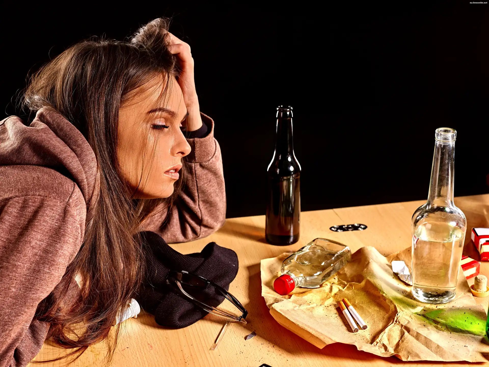 Alkohol, Zmęczona, Kobieta, Sen, Papierosy na Komórkę