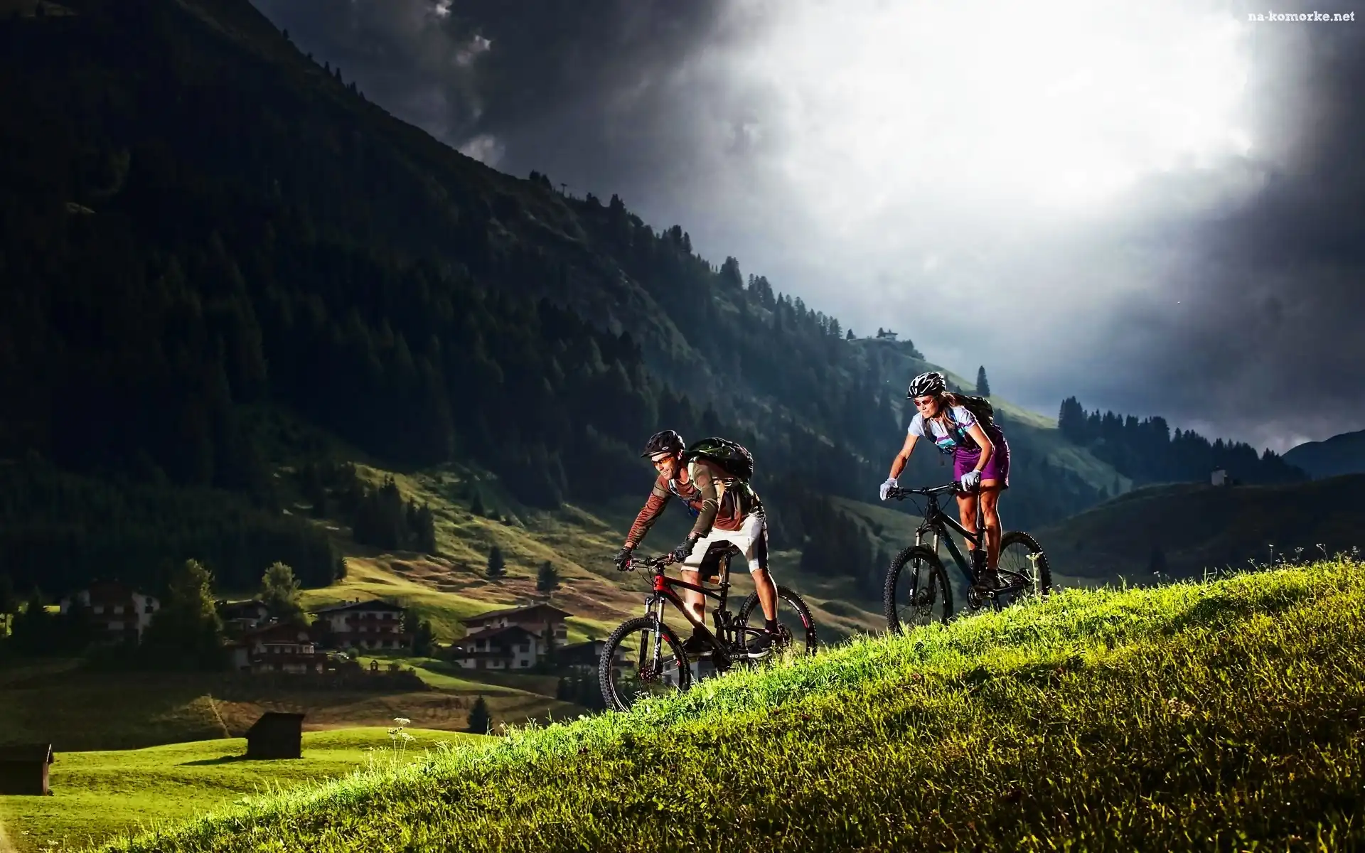 Góry Alpy, Mężczyzna, Kobieta, Poranek, Turyści, Świt na Komórkę