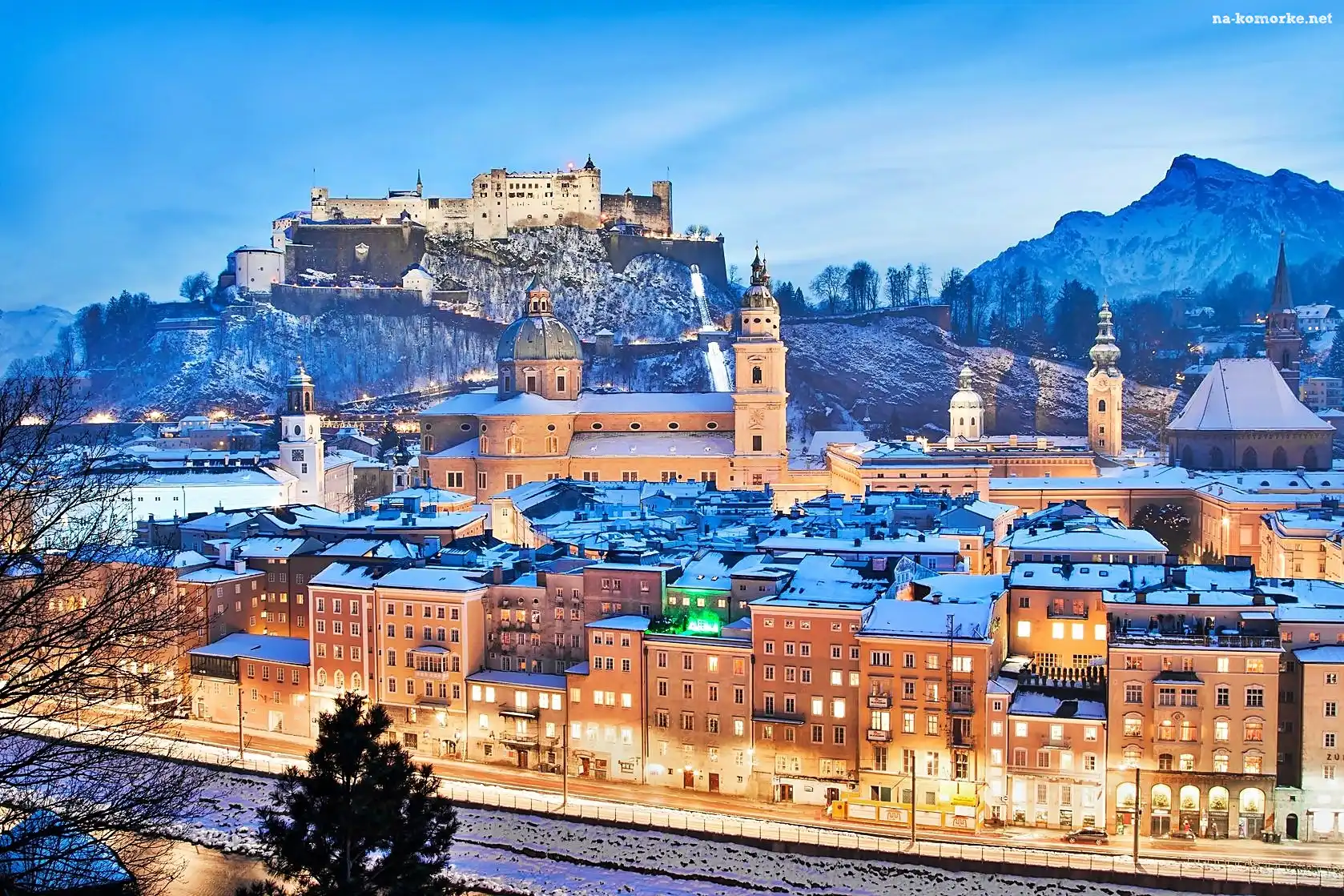 Alpy, Panorama, Salzburg, Salzach, Miasta, Rzeka na Komórkę