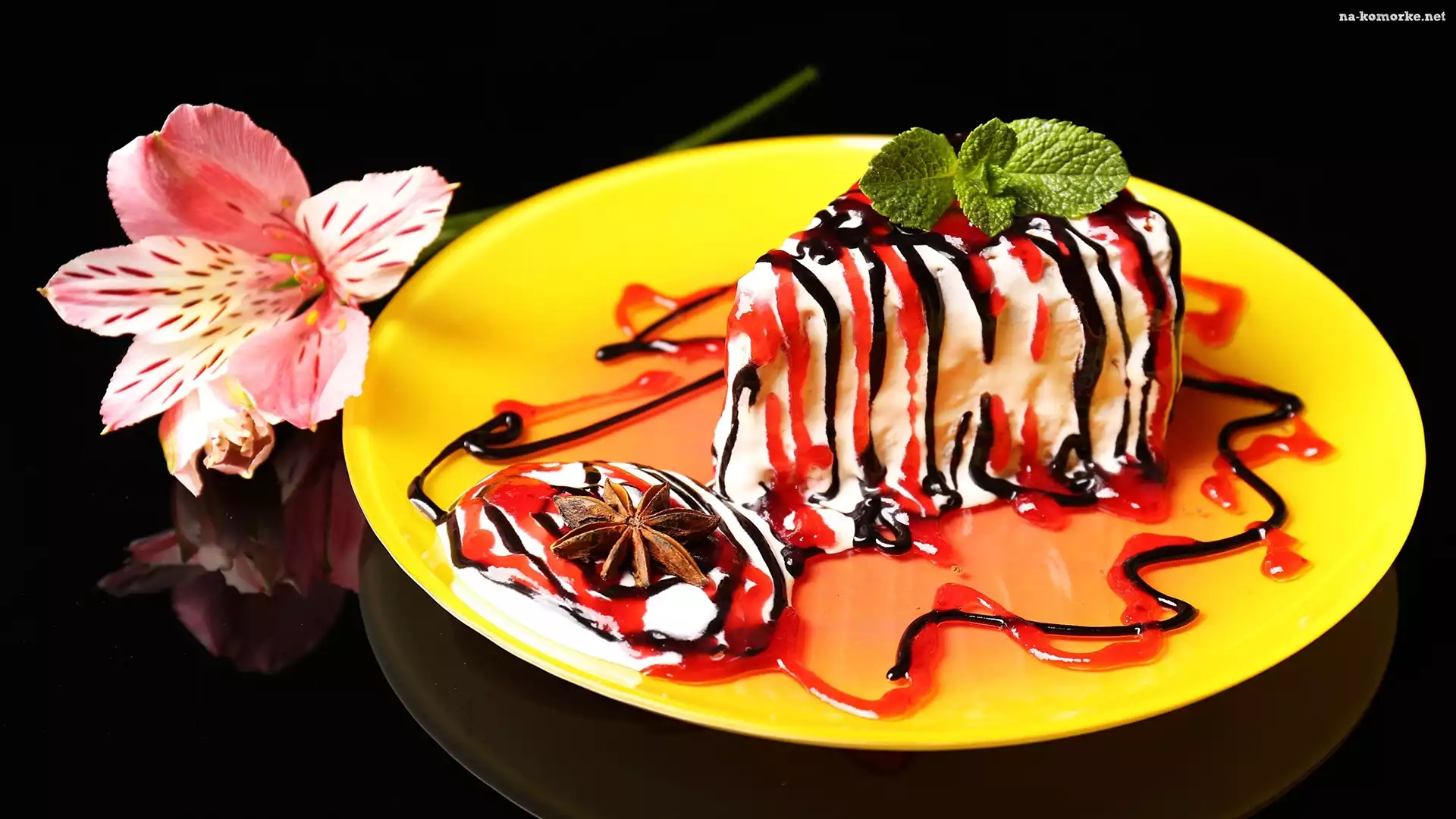 Anyż gwiaździsty, Lody, Kwiat, Żółty, Tło, Sos, Czarne, Talerz, Alstremeria na Komórkę