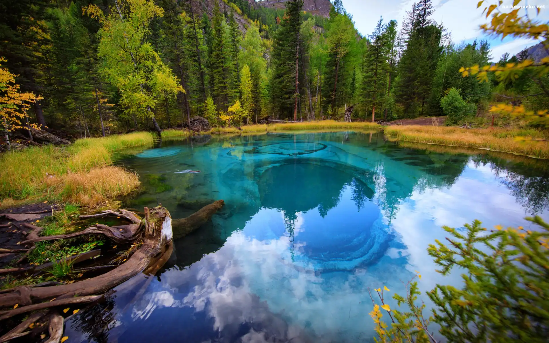 Drzewa, Rosja, Las, Korzenie, Jezioro Geysernoe, Republika Ałtaju na Komórkę