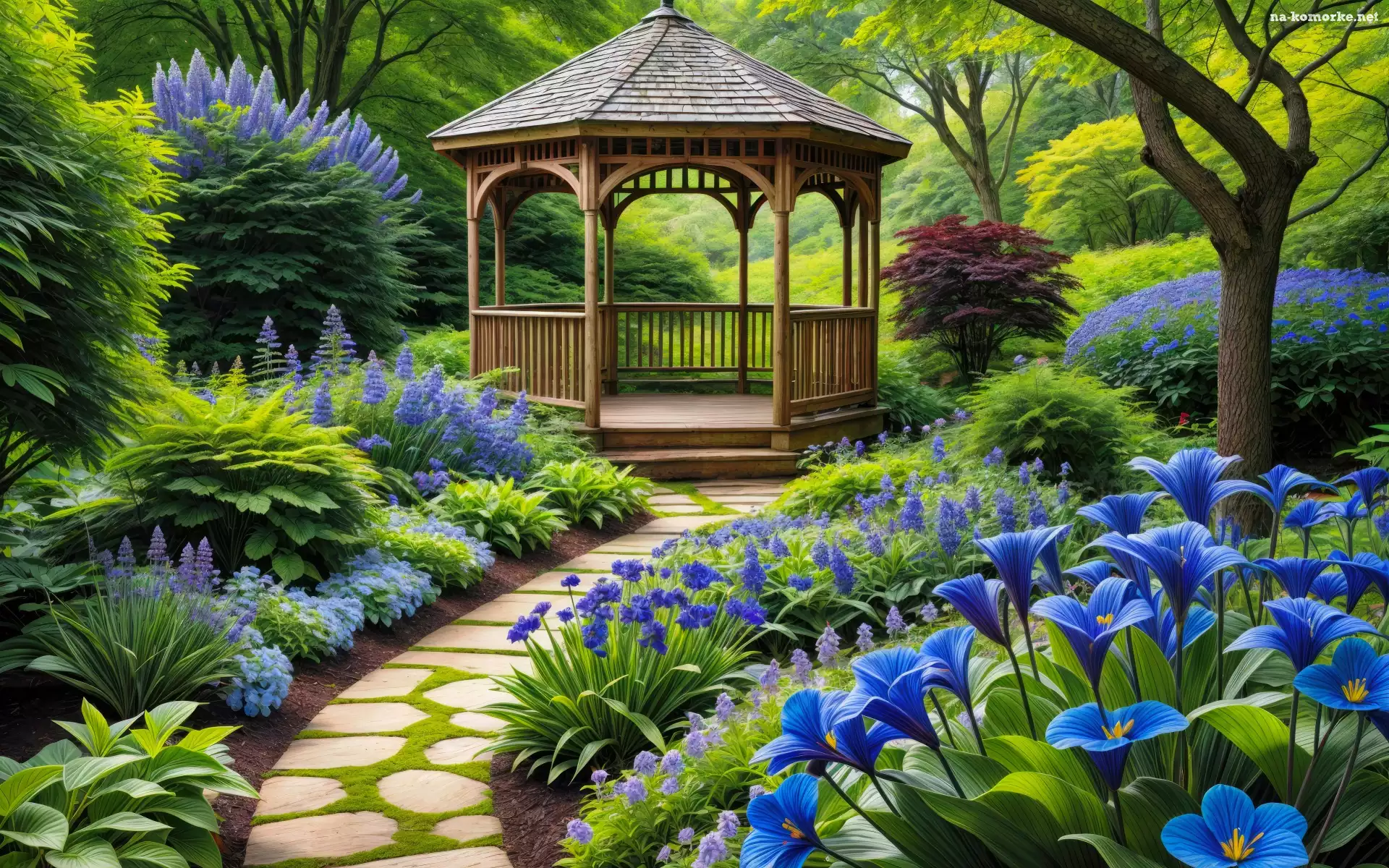 Ścieżka, Kwiaty, Park, Altana na Komórkę