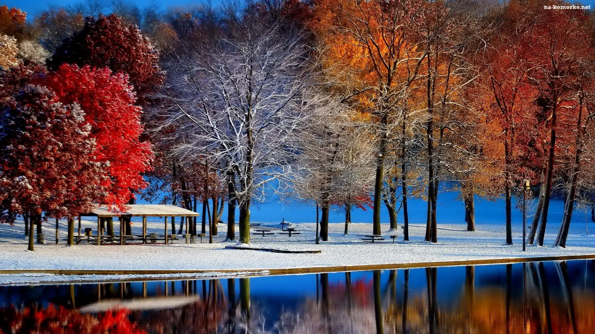 Altanka, Jesień, Śnieg, Park, Drzewa na Komórkę