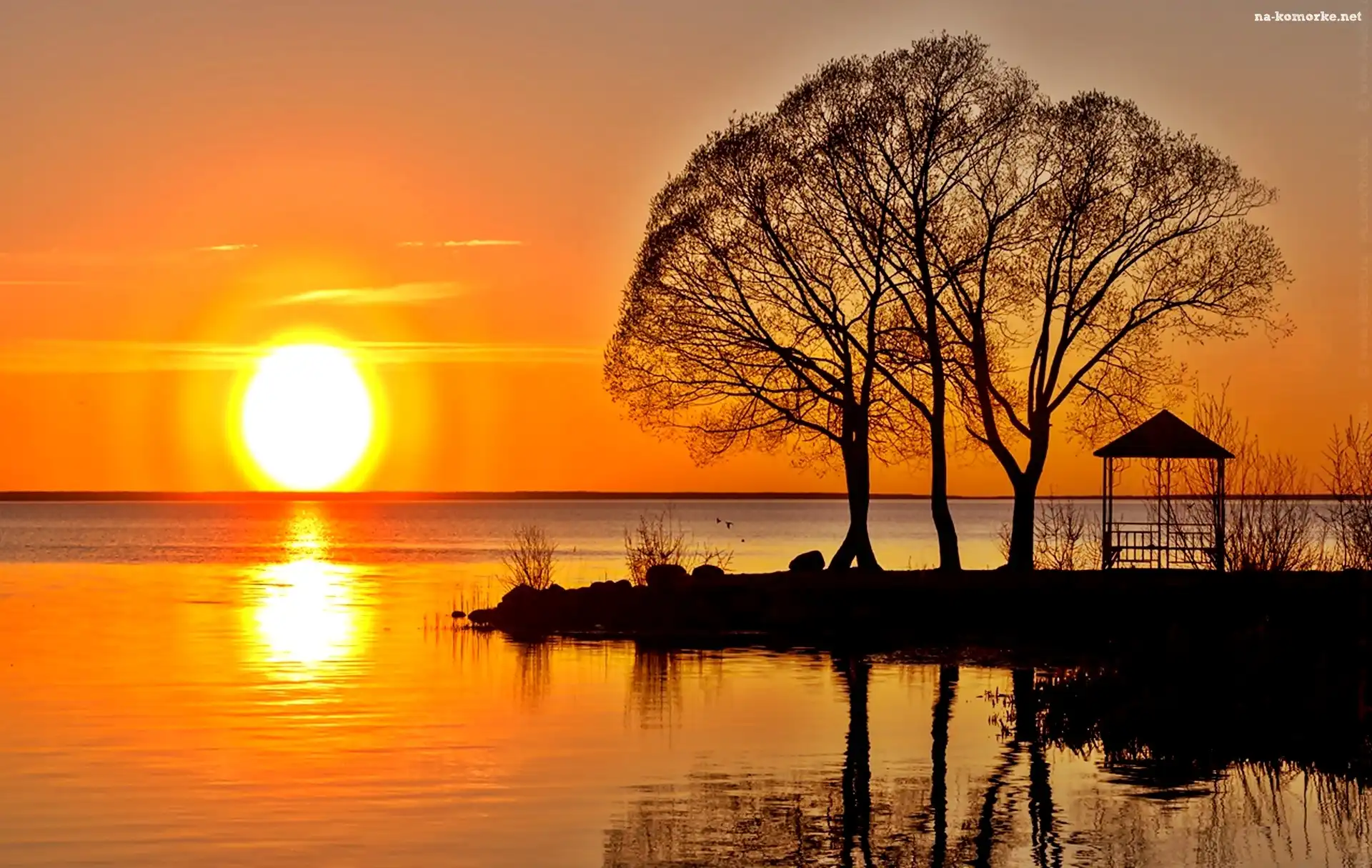 Altanka, Jezioro, Zachód, Słońca, Drzewa na Komórkę