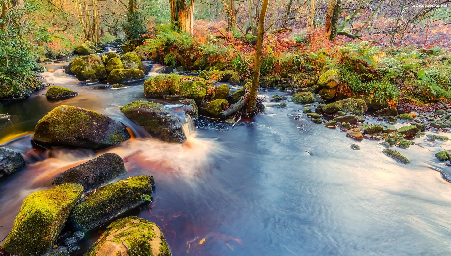 Anglia, Omszałe, Opactwo Bolton Abbey, Kamienie, Park Narodowy Yorkshire Dales, Las Valley of Desolation, Rzeka Wharfe, Drzewa na Komórkę |