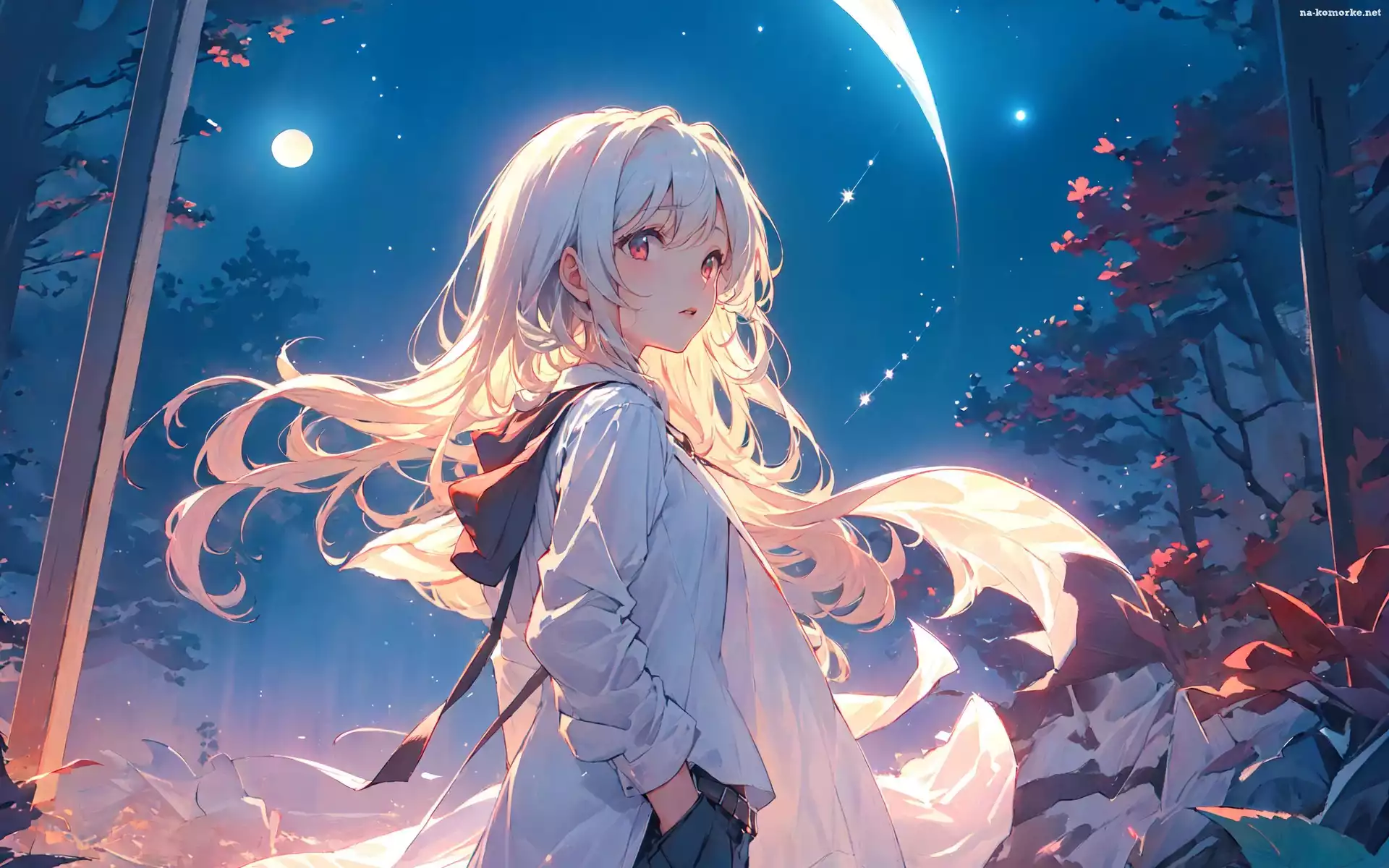 Gwiazdy, Dziewczyna, Kaptur, Anime, Włosy, Białe na Komórkę