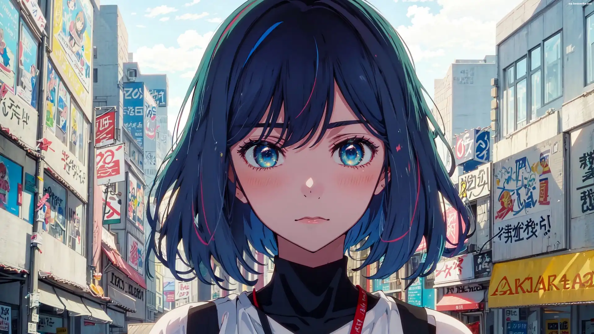 Budynki, Dziewczyna, Ulica, Anime, Rumieniec, Oczy na Komórkę